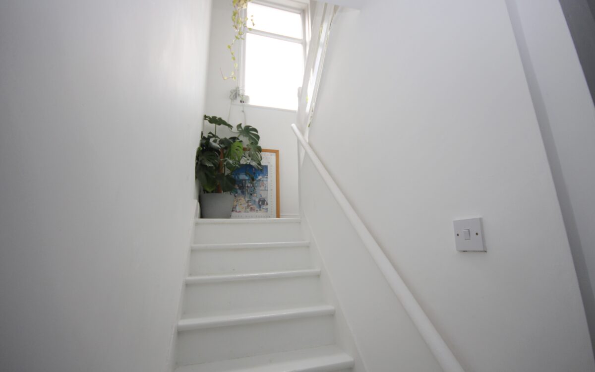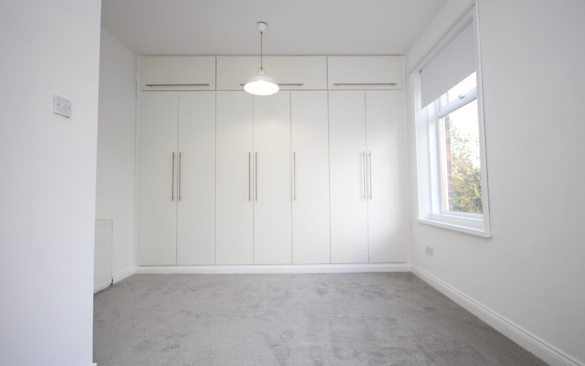 No. 1: 12’ 9” x 12’ 7” plus generous fitted wardrobes all along one wall with motion sensor lighting/a variety of storage options including clothes rails, drawers, hanging space & cupboards above, 2 uPVC double glazed windows with garden views, radiator and 2 suspended bedside lights. This bedroom is the original bedroom combined with the original 3rd bedroom.