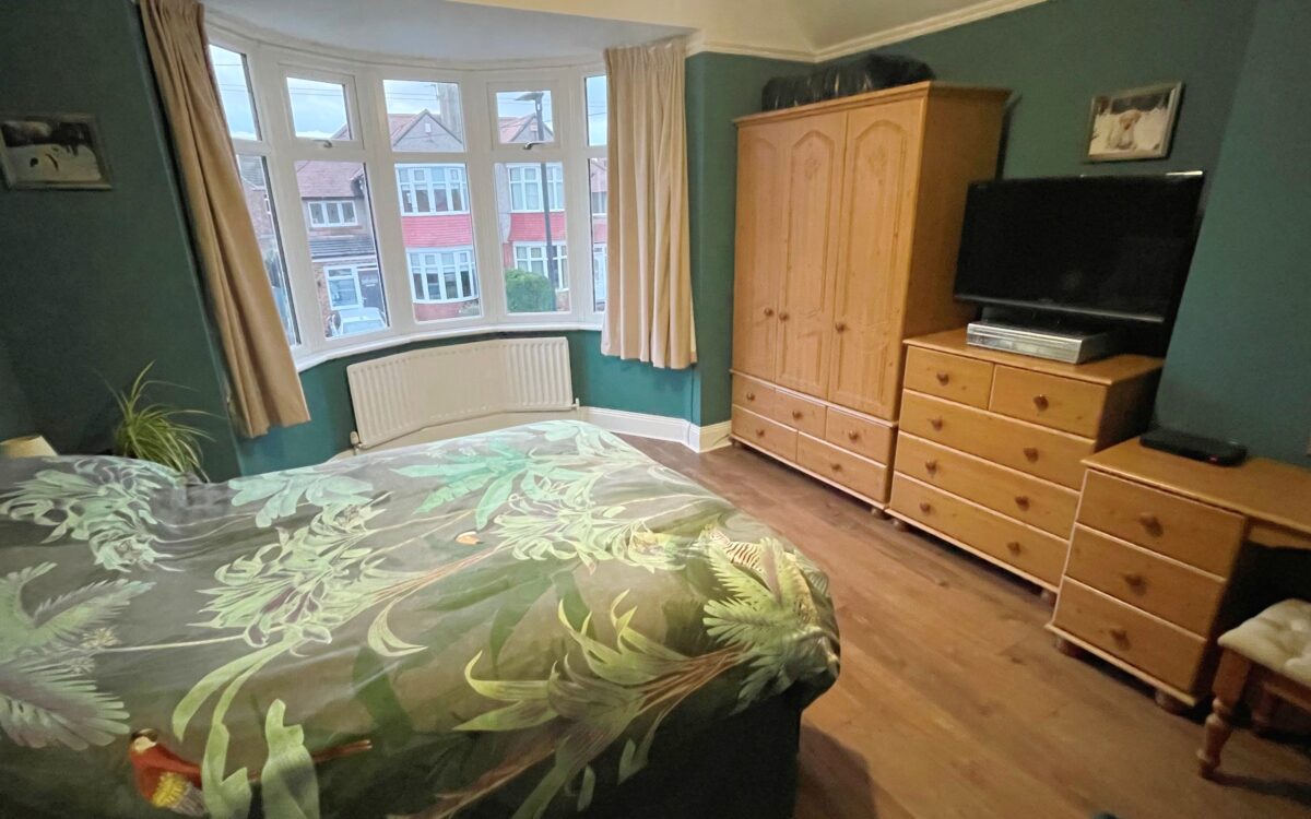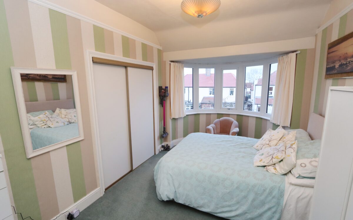 No. 2: 9’7″ x 16’10” (2.96m x 4.91m) plus double fitted wardrobe including uPVC double glazed bay window and radiator.