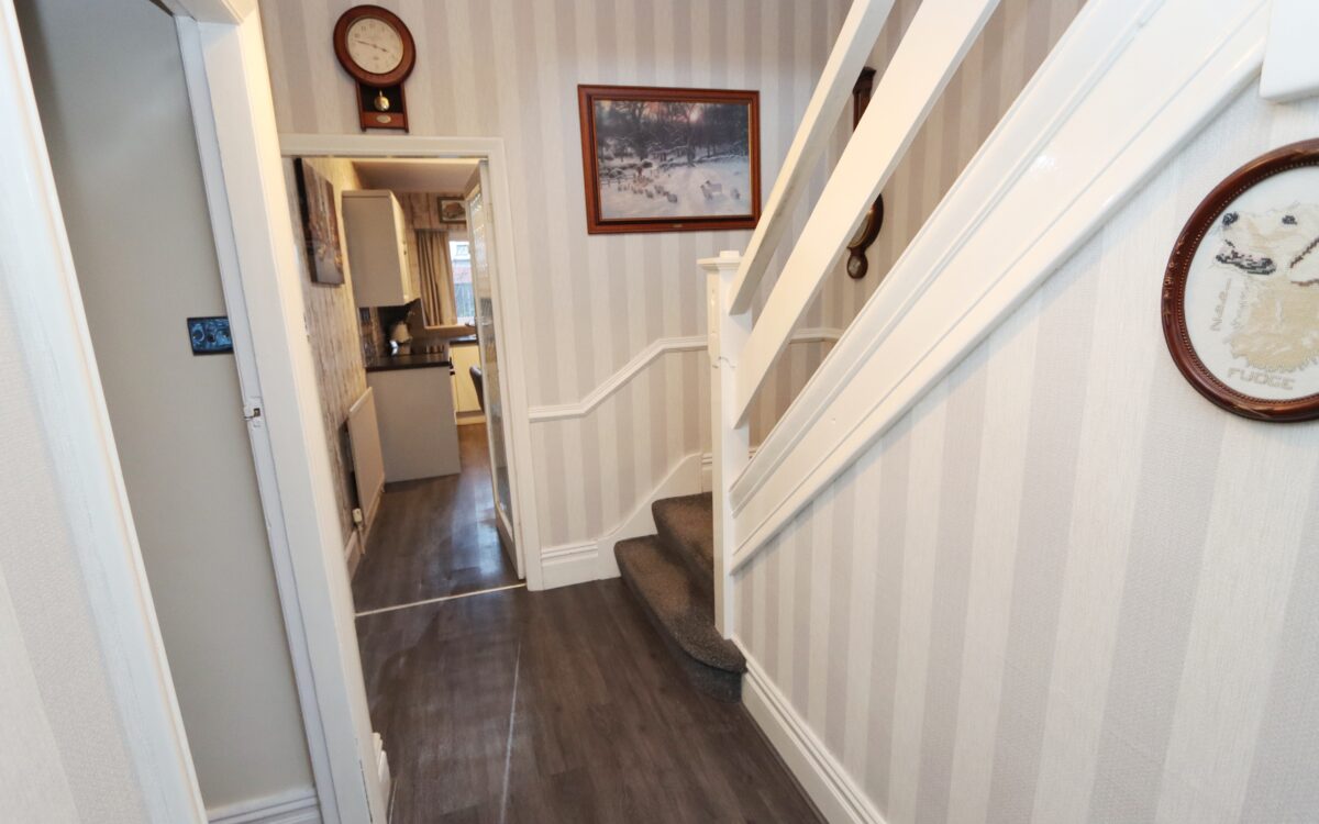 HALL: fitted understairs cloaks cupboard & double banked radiator.