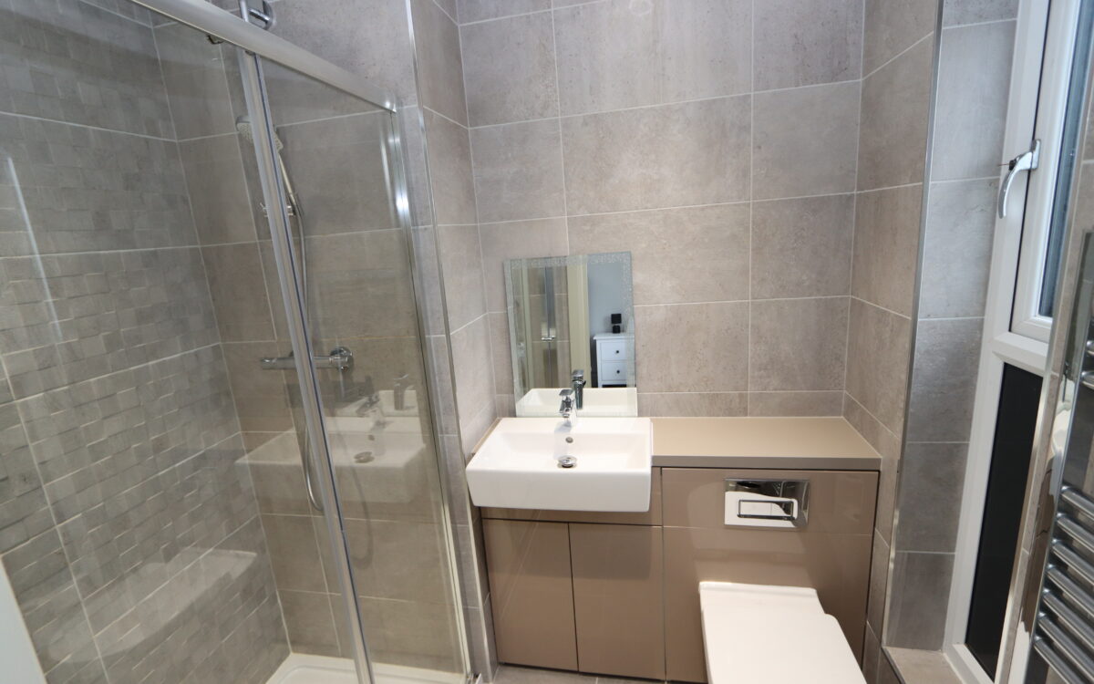 PLUS EN-SUITE SHOWER ROOM with fully tiled walk-in shower, vanity unit, low level WC, upright stainless-steel towel radiator, extractor fan, 3 concealed downlighters & uPVC double glazed window.