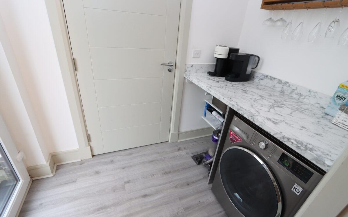UTILITY ROOM: 4’9″ x 6’10” (2.36m x 2.08m) plumbing for washing machine, uPVC double glazed door to rear garden and door to downstairs WC.