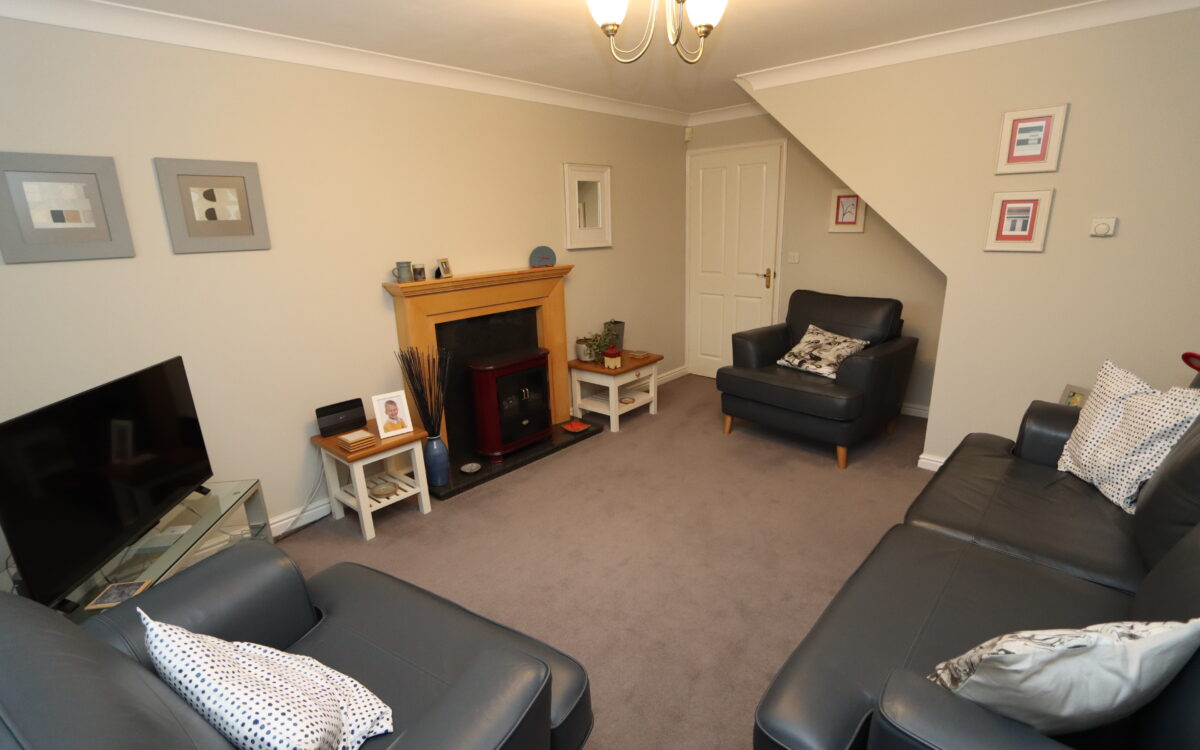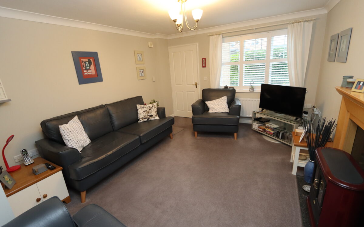 LOUNGE: at the front 11’9″ x 16’5″ (3.58m x 5.00m max overall measurement) with radiator, radiator, fireplace with fitted electric fire and uPVC double glazed window with plantation shutters.