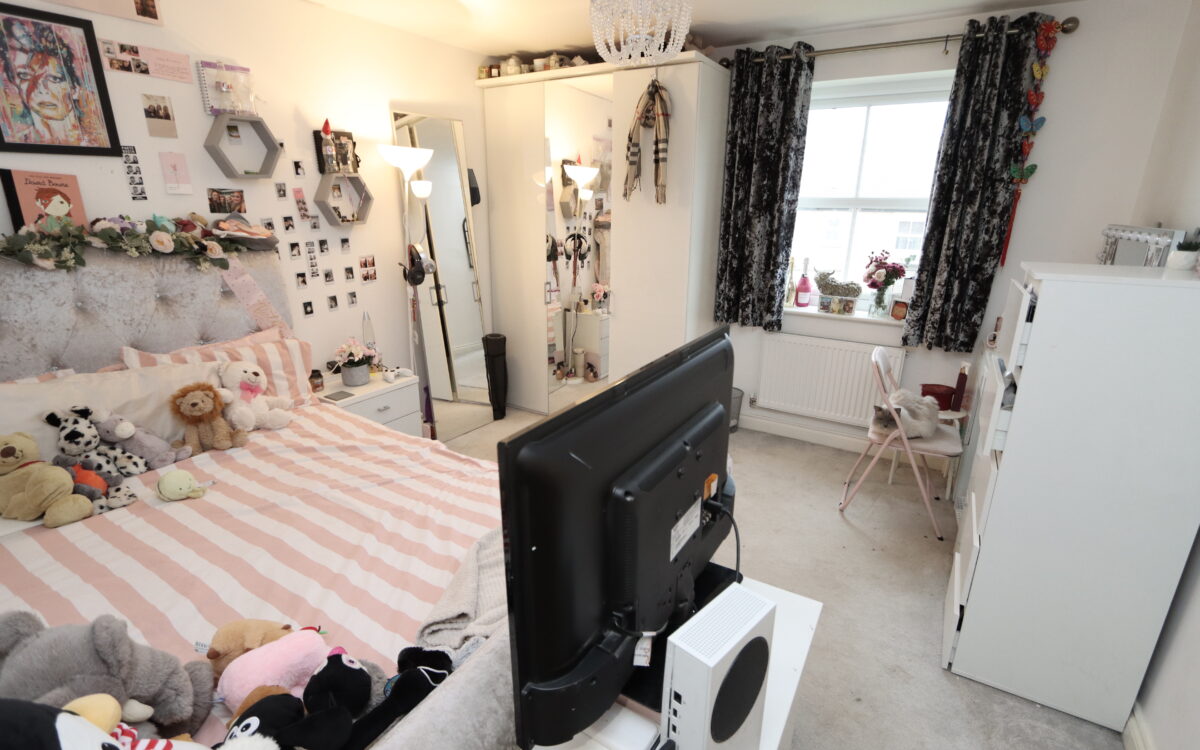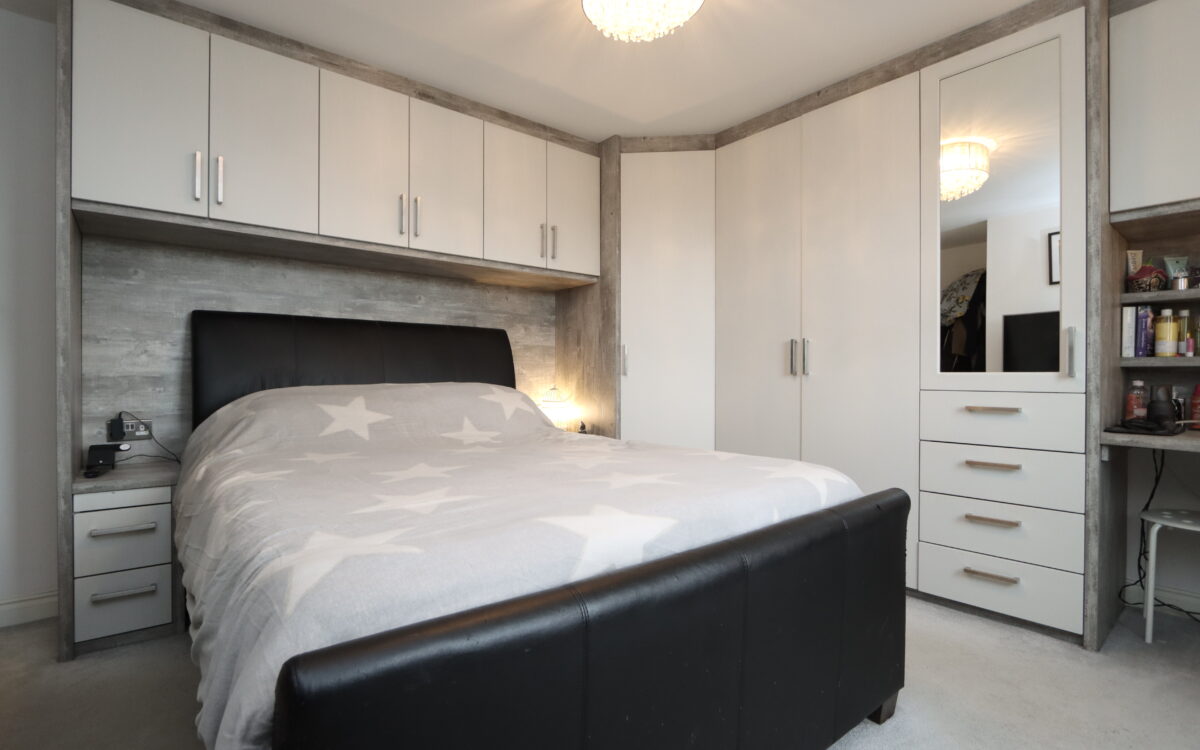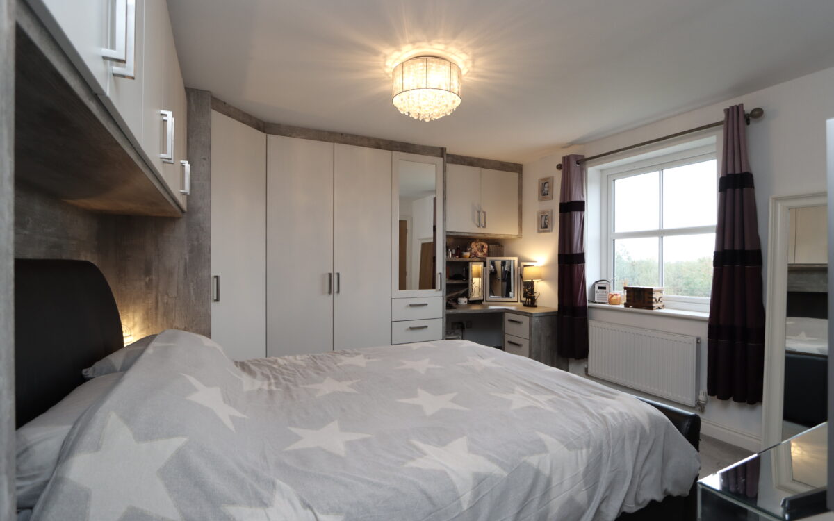 No. 1: at front, 12’ 5” x 12’ 5” (3.78m x 3.78m) including fitted furniture on 2 walls comprising: wardrobes, cupboards, drawers & dressing table, radiator, uPVC triple glazed window with open aspect and door to en-suite.