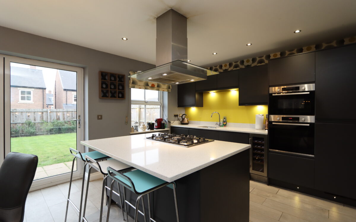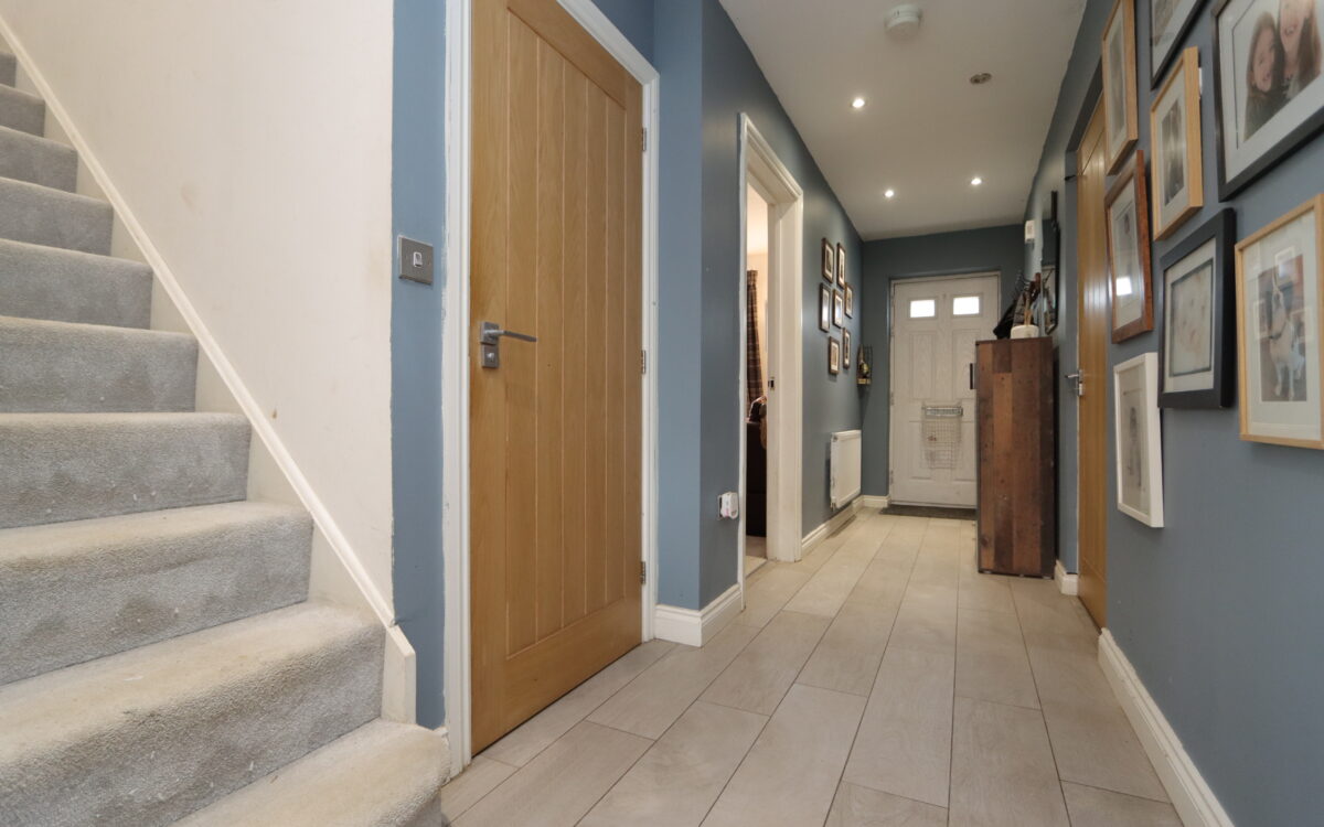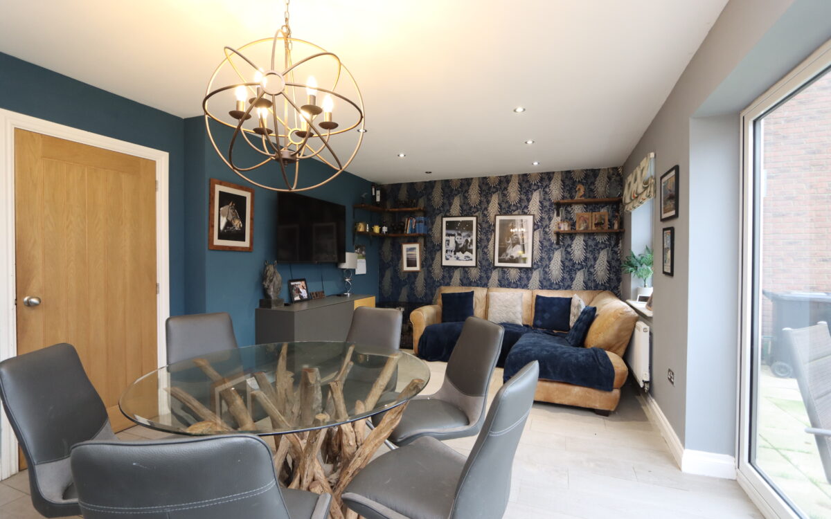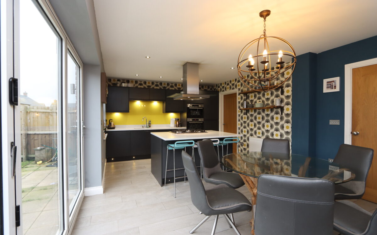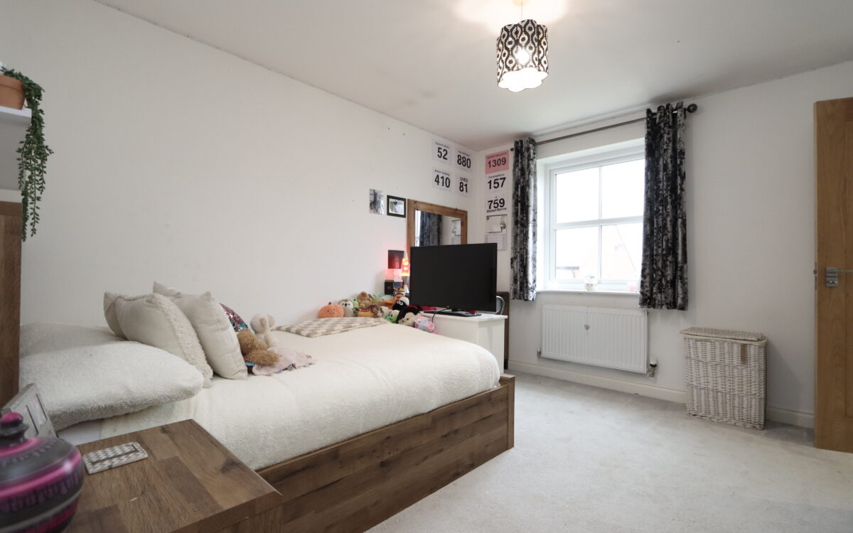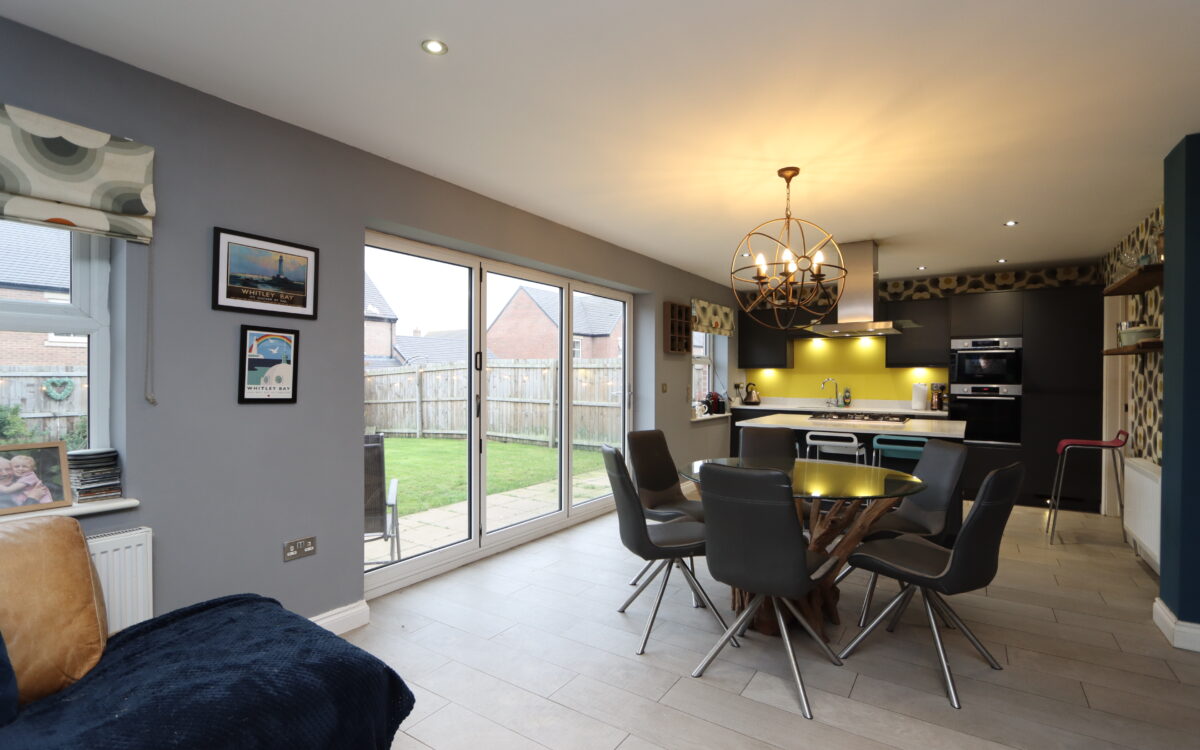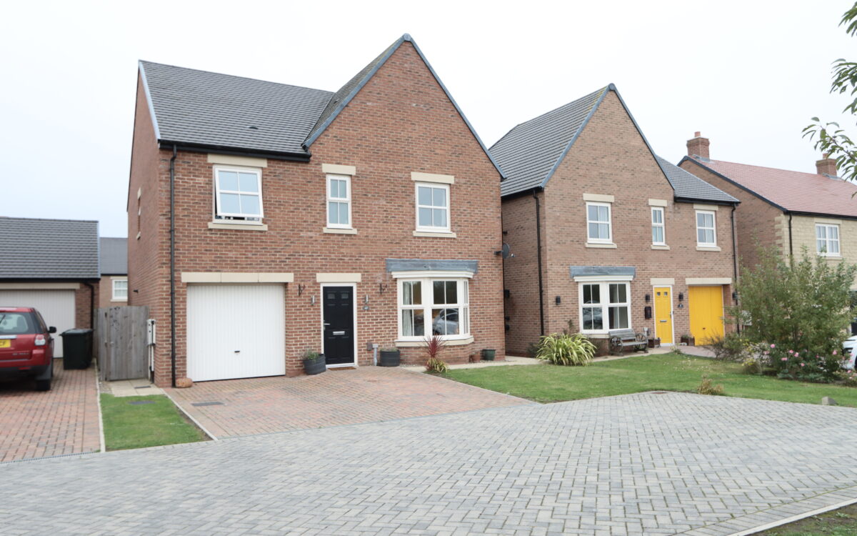 WELL SITUATED, MODERN AND WELL PROPORTIONED 4 DOUBLE BEDROOMED DETACHED FAMILY HOME which was built by Cussins circa 2020 to the Tulip plan and offers practical family oriented accommodation throughout as well as open aspect from the front elevation. This freehold property benefits from the remainder of a 10 year NHBC guarantee in addition to all of the features and extras typically associated with a newly built property. This particular home has the advantage of uPVC double glazing (with triple glazing to the front elevation), ceiling air ventilation system, gas central heating, driveway with parking for 2 vehicles plus additional parking at the end of the shared driveway, lounge with bay window offering an open aspect, dining kitchen with bi-folding doors with garden aspect & utility room off, downstairs WC, 4 double bedrooms – 2 of which have en-suite shower rooms, partially boarded loft space, family bathroom, garage, and gardens to front and rear.