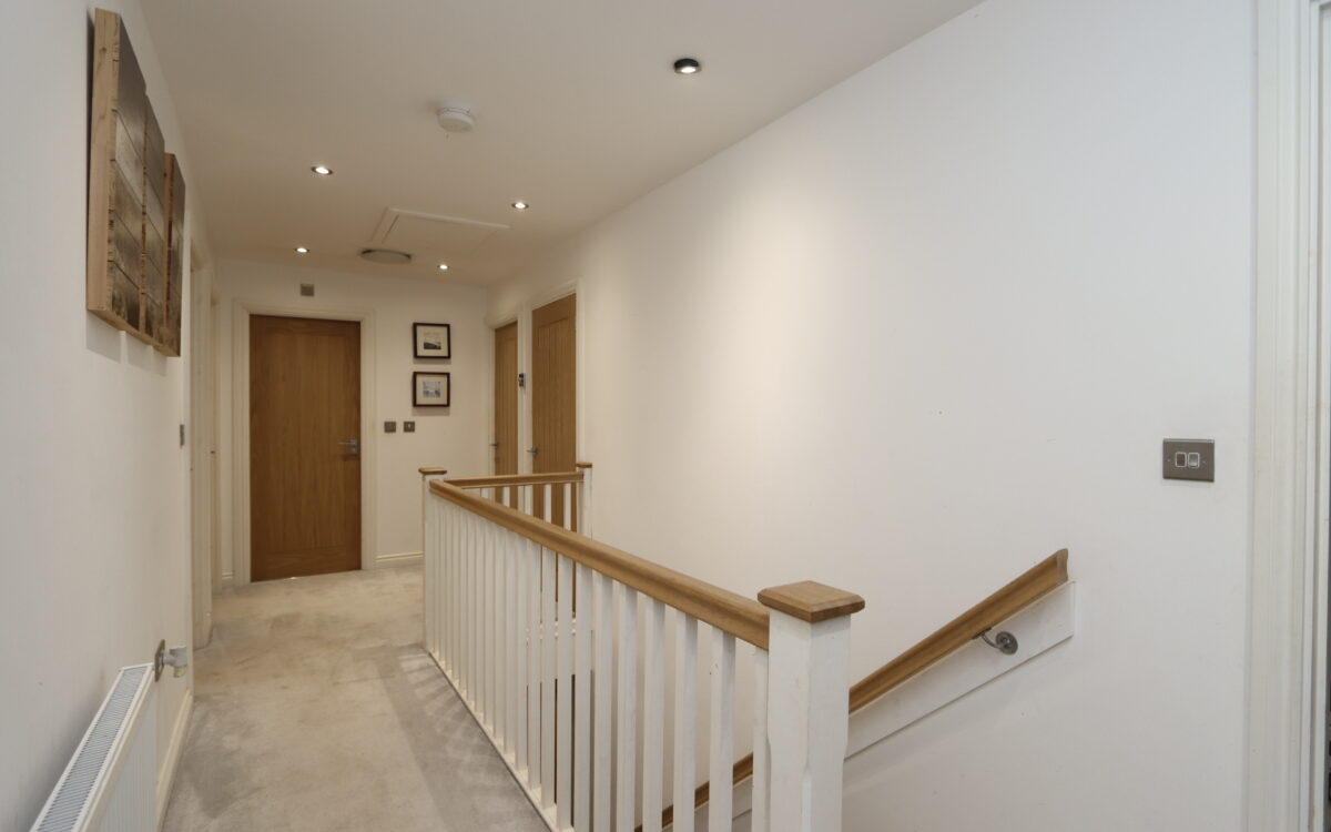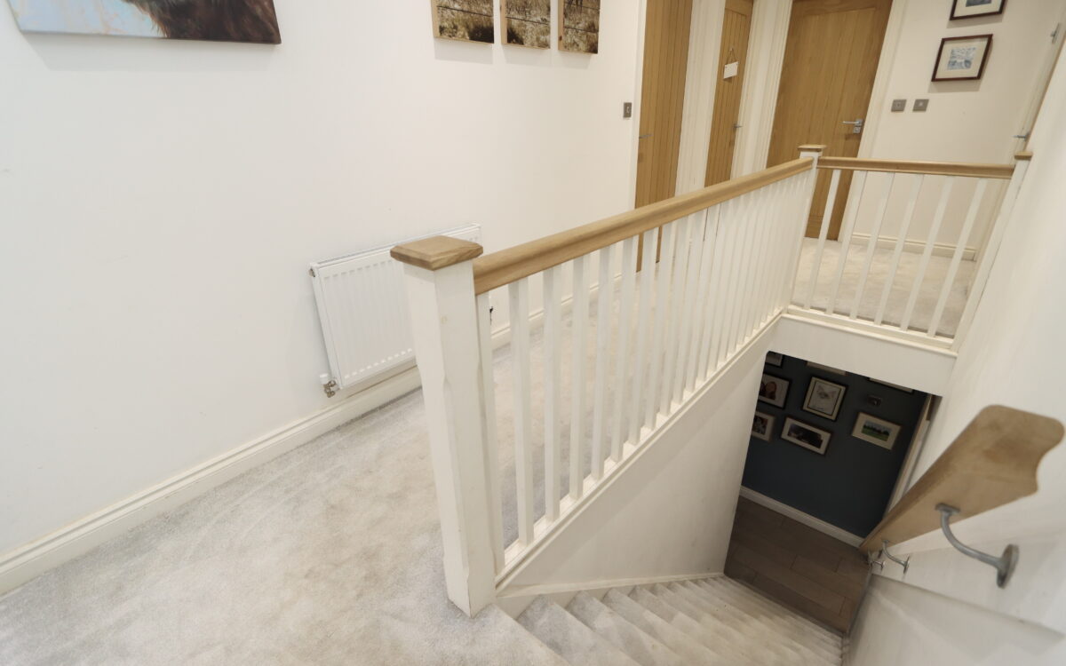 LANDING: uPVC double glazed window, radiator, 6 concealed down lighters, spindle balustrade, cupboard housing hot water cylinder and access to loft space.