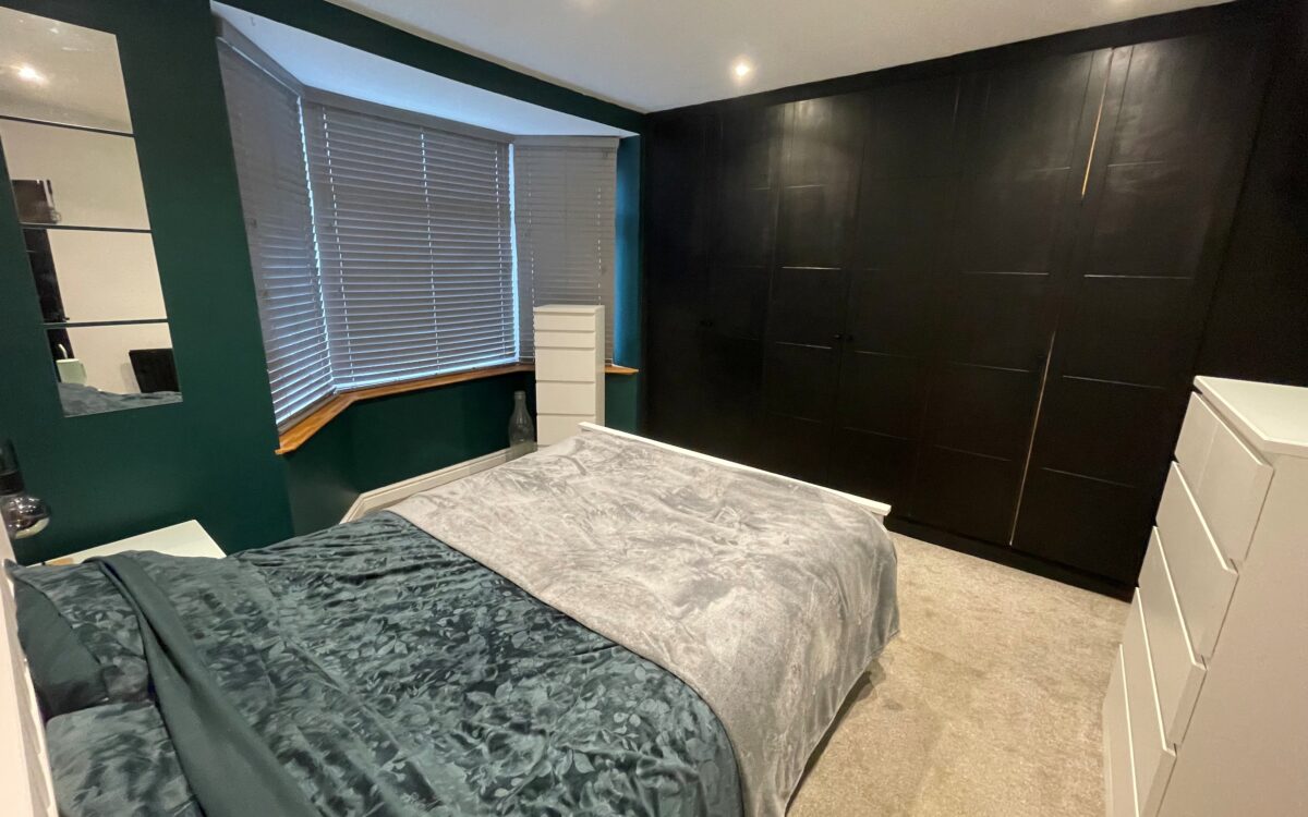 No. 1: to the front 10’9″ x 14’2″ (3.28m x 4.32m) plus fitted wardrobes all along one wall, including uPVC double glazed bay window, radiator & 6 concealed downlighters.