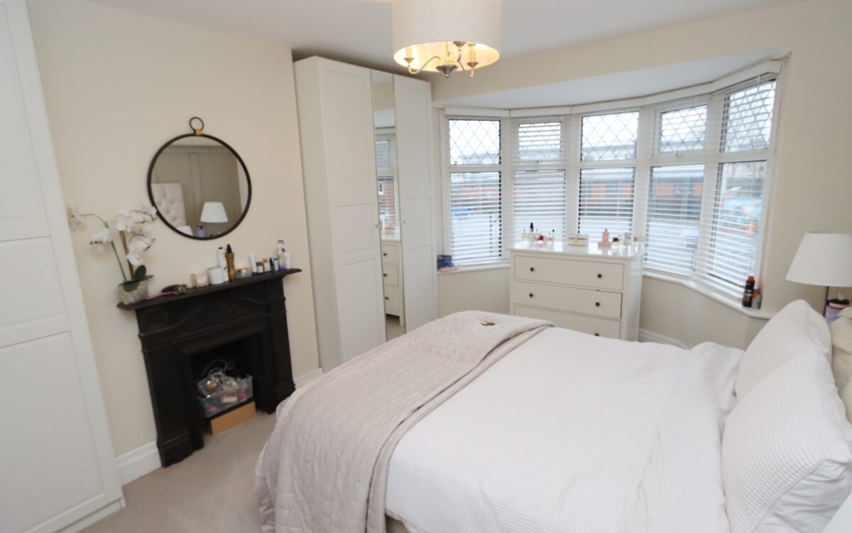 No. 1: to the front 16’0″ x 9’4″ (4.88m x 2.87m) including uPVC double glazed bay window, plus 2 double wardrobes, radiator, fireplace and open aspect over school yard.