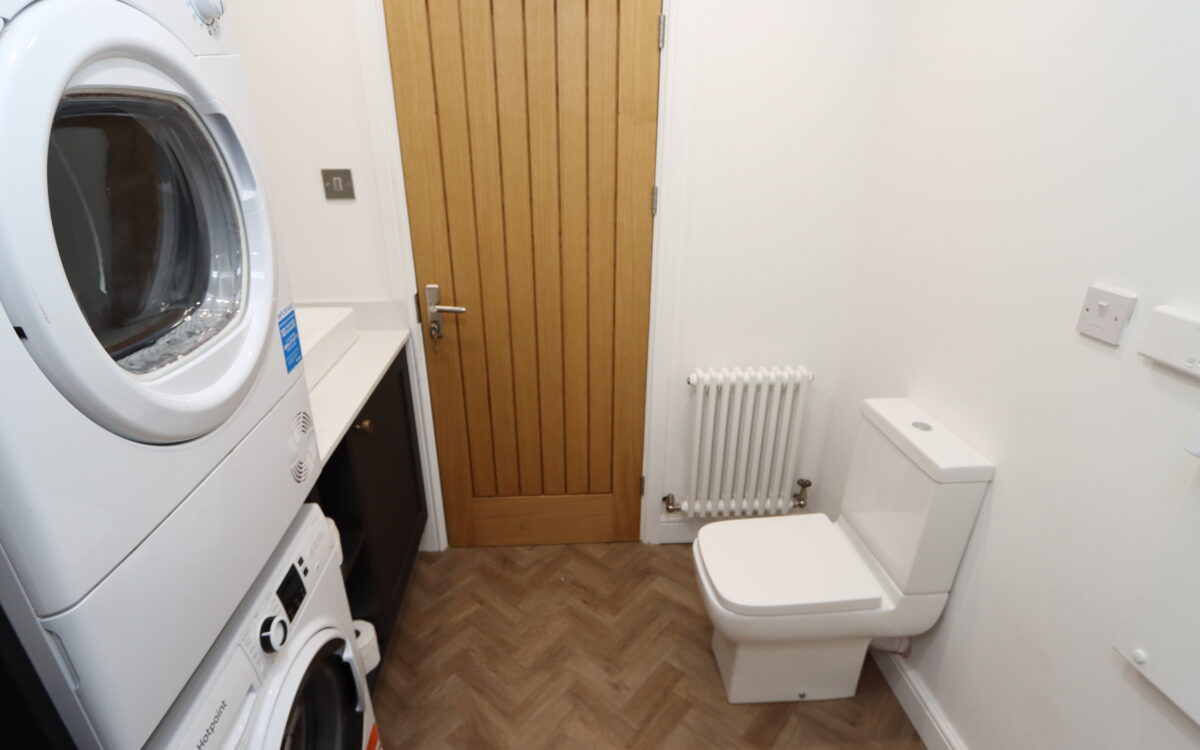 CLOAKROOM/UTILITY ROOM: with plumbing for washing machine, sink with hot and cold water supply, extractor fan, radiator, low level WC, ‘Baxi’ combi-boiler (installed 2025) and door to small garage.