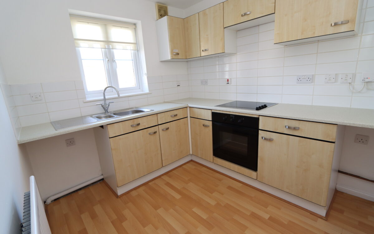 KITCHEN 9’7″ x 7’9″ (2.92m x 2.36m) fitted wall and floor units, 1½ bowl stainless steel sink & drainer, ‘Indesit’ hob, ‘Indesit’ oven, plumbing for washing machine, ‘Potterton’ combi-boiler, partially tiled walls, radiator & uPVC double glazed window.