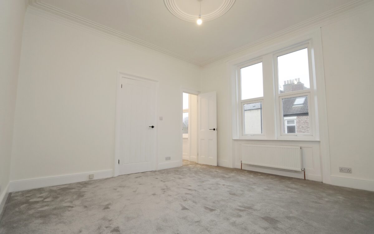 BEDROOM 1: 13’ 2” x 13’ 2” (4.01m x 4.01m), decorative corniced ceiling & plaster rose, double banked radiator, 2 uPVC double glazed windows and door to nursey / walk-in wardrobe / potential en-suite.