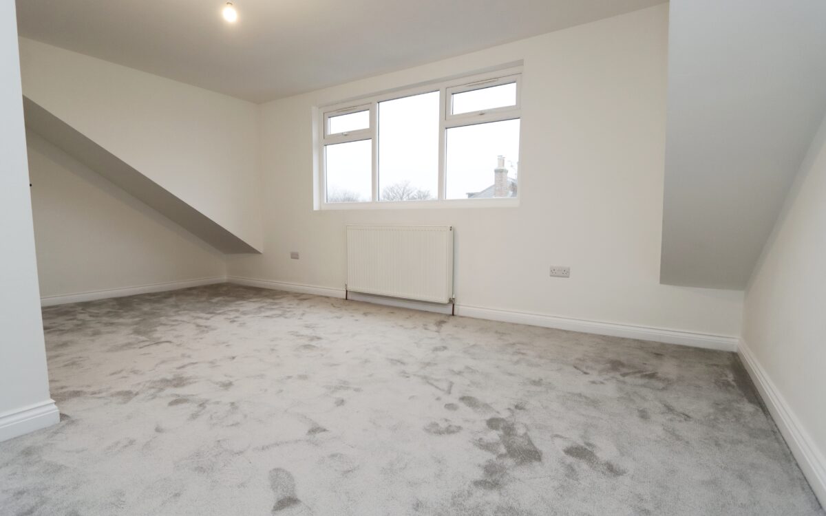 BEDROOM 2: (dormer), 18’ 9” x 12’ 7” (5.71m x 3.84m including eaves), double banked radiator and uPVC double glazed bay window.
