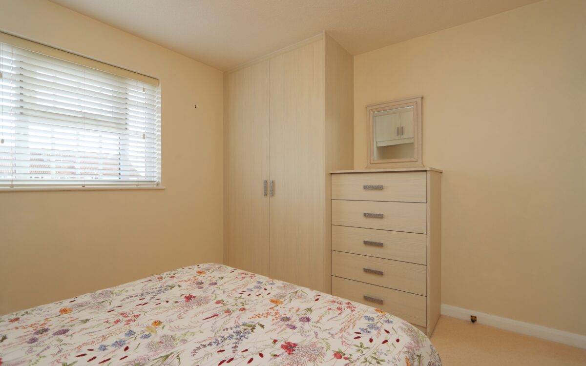 BEDROOM 1: 10’ 11” x 9’ 9” (3.33m x 2.97m), uPVC double glazed window with venetian blinds and fitted bedroom furniture on 2 walls including: wardrobes, cupboards, bedside cabinets and chest of drawers.~