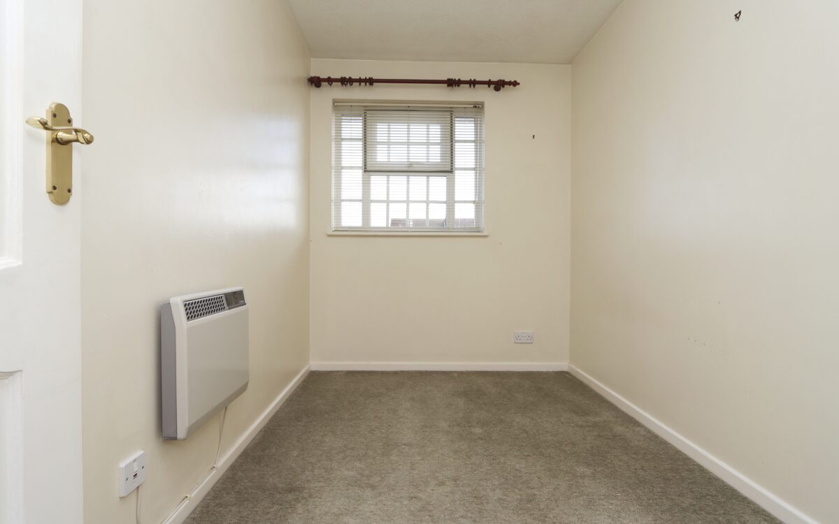 BEDROOM 2: 9’ 5” x 6’ 10” (2.87m x 2.08m), uPVC double glazed window with venetian blinds and ‘Dimplex’ electric wall heater.