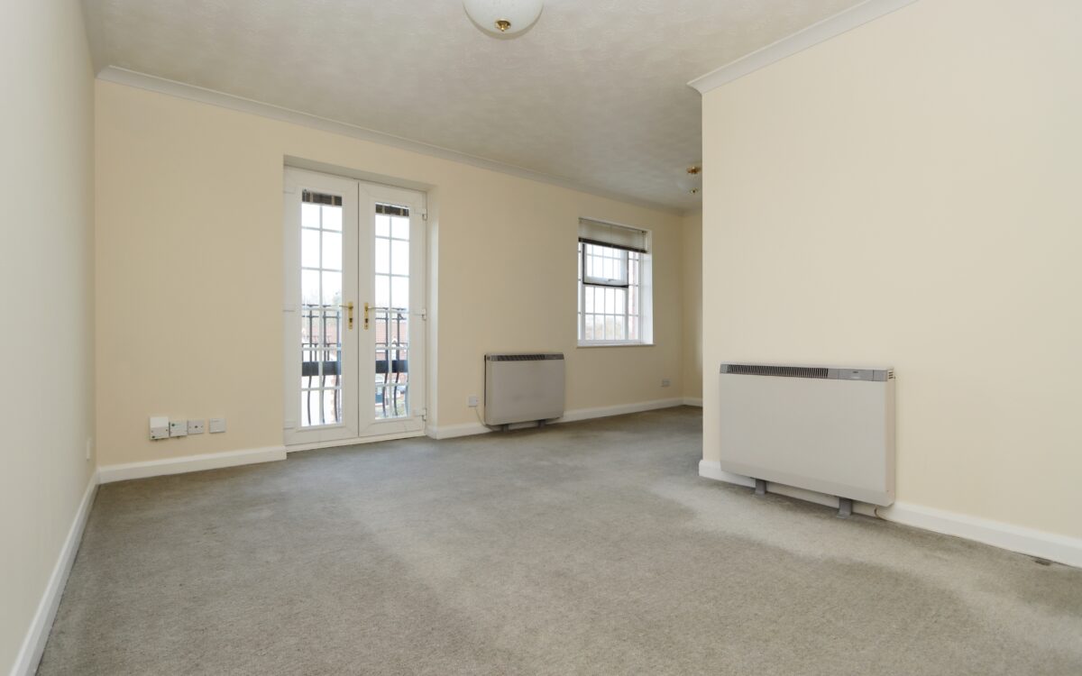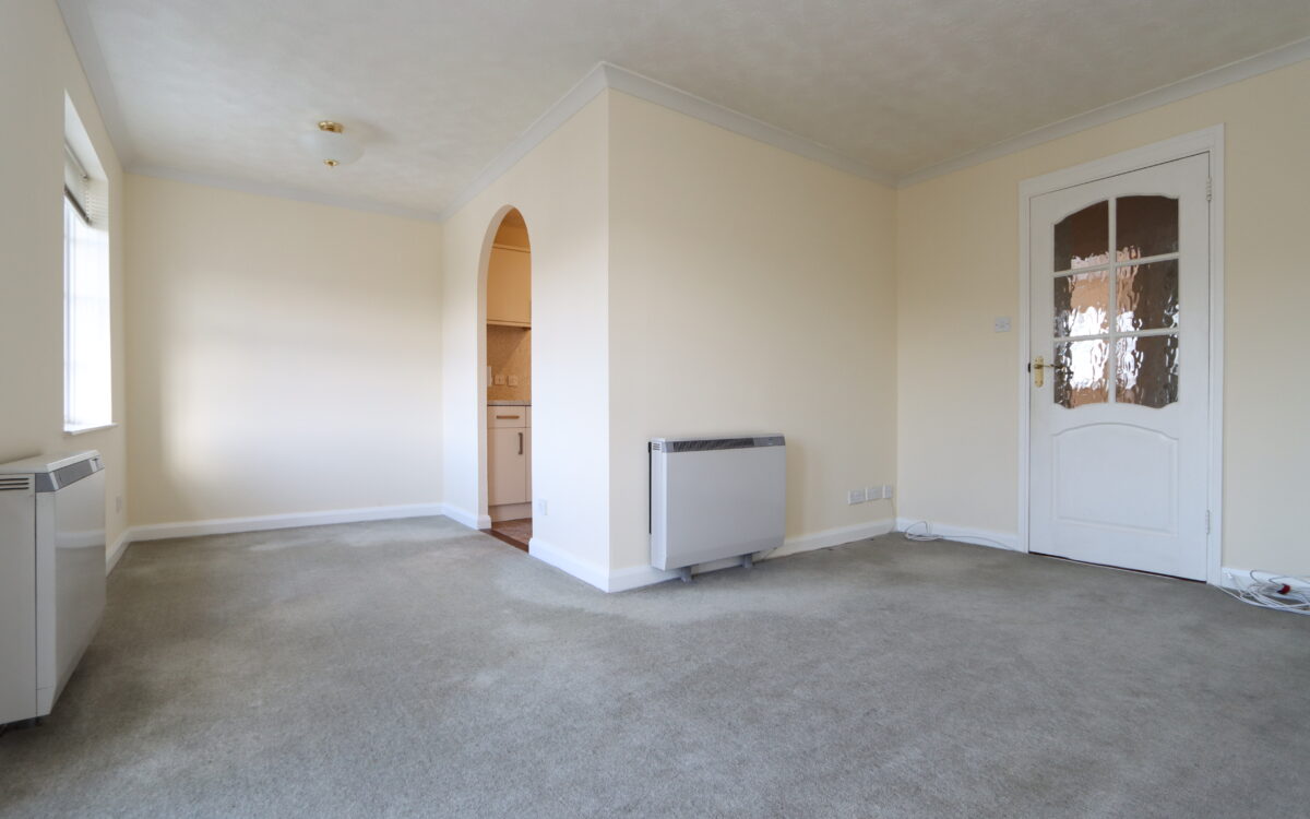 LIVING ROOM: 17’ 7” x 13’ 9” (5.36m x 4.19m – maximum overall L shaped measurement), 2 ‘Dimplex’ night storage heaters, uPVC double glazed window with venetian blinds, uPVC double glazed double opening doors with perfect blinds which give access to the ‘Juliet’ balcony offering an open, sunny westerly aspect, telephone point, TV point and arch to kitchen.