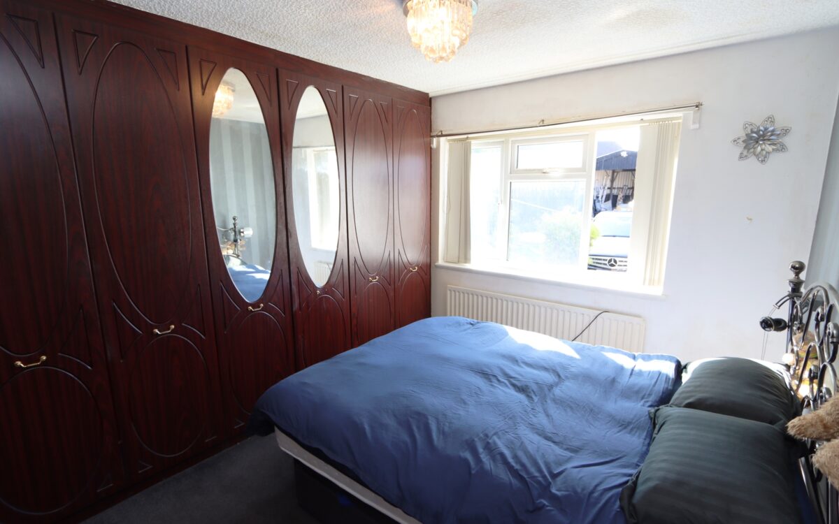 BEDROOM 1: at rear, 12’ 5” x 8’ 10” (3.78m x 2.69m) plus fitted wardrobes all along one wall, radiator and uPVC double glazed window.