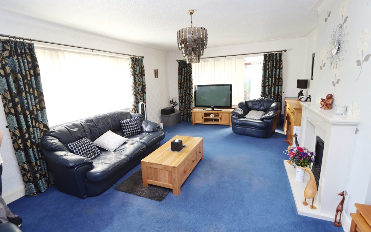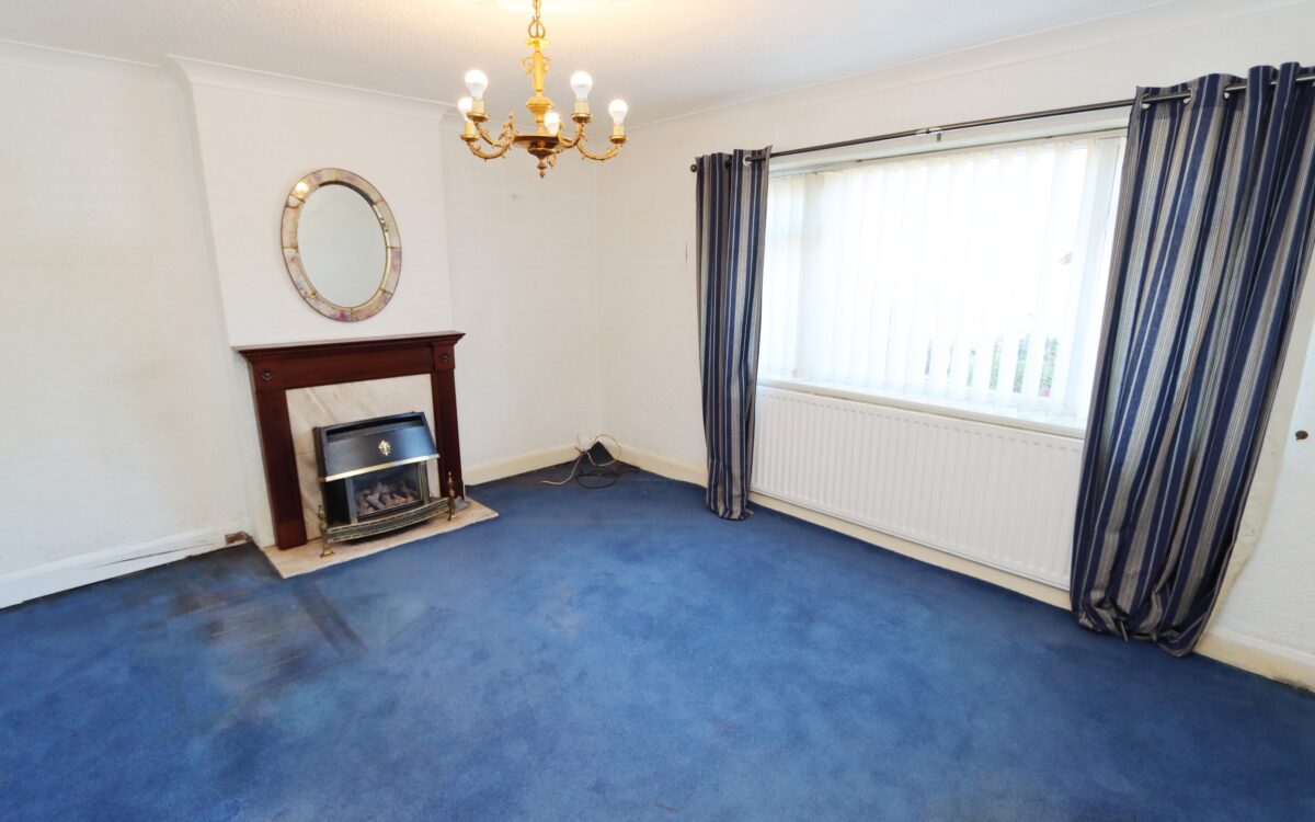 LIVING ROOM: to front & side, 22’ 0” x 13’ 10” (6.71m x 4.22m), 2 uPVC double glazed windows, fireplace with fitted gas fire, 3 radiators and door leading to conservatory.