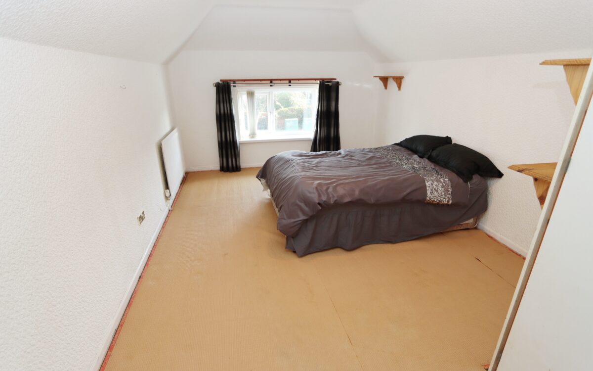 BEDROOM 2: 14’ 10” x 12’ 10” (4.52m x 3.91m), 2 radiators, uPVC double glazed window and fireplace incorporating fitted gas fire.