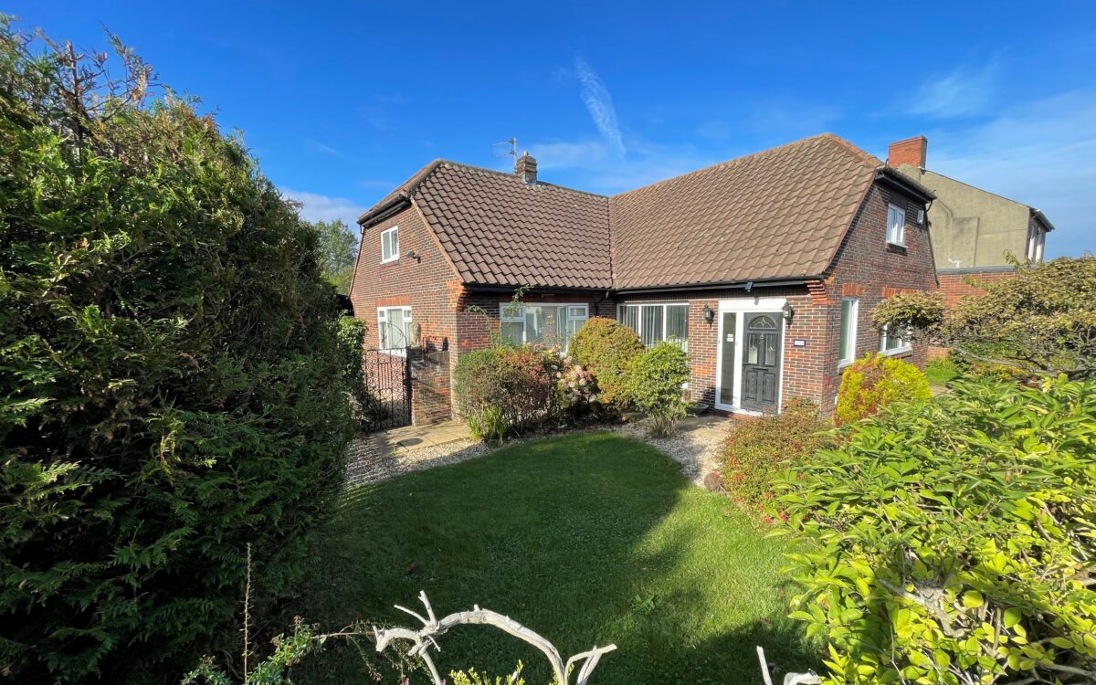 SUPERBLY SITUATED AND MOST UNIQUE, FIVE BEDROOMED DETACHED DUTCH BUNGALOW which is situated on a vast plot with surrounding gardens offering excellent scope to update, develop and extend to suit individual requirements. This bungalow provides ample garaging (2 garages – one single, one double) for multiple vehicles, a double width car port, a sunny westerly facing rear garden, uPVC double glazing, gas central heating, 5 bedrooms over 2 floors, 2 versatile ground floor reception rooms, conservatory, dining kitchen, bathroom to the ground floor with shower cubicle, downstairs WC, and a large driveway / side access via electric gates.