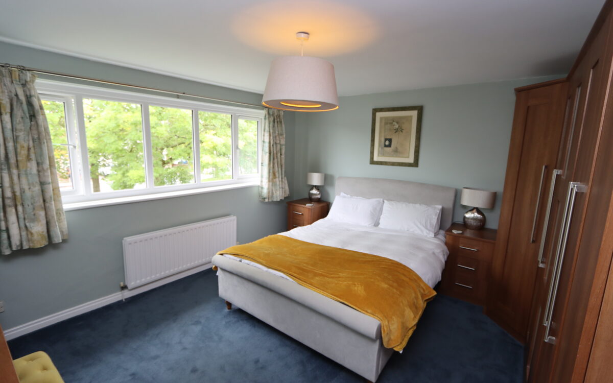 No. 1: at front, 13’ 6” x 12’ 9” (4.11m x 3.89m) including fitted furniture comprising: wardrobes, 2 bedside cabinets & dressing table, double banked radiator and large uPVC double glazed window.