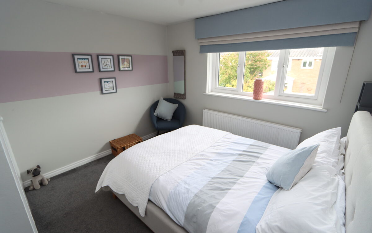 No. 2: at front, 12’ 7” x 9’ 2” (3.84m x 2.79m), plus double fitted wardrobe, double banked radiator and uPVC double glazed window with roller blind.