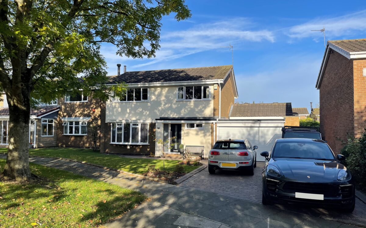 BEAUTIFULLY UPDATED, MODERNISED & WELL PRESENTED FOUR BEDROOMED DETACHED HOME which was built by Bellway in the mid 1970s. This excellent family home is in excellent order throughout and is situated set back from the road, in a quiet cul-de-sac and has the advantage of rendering to the front & rear elevations, PVC fascias & guttering, uPVC double glazing, gas central heating (combi boiler), new internal doors, burglar alarm, hallway with oak & glass feature staircase, refitted ground floor shower room (September 2024), lounge with log burner, superb dining kitchen with garden aspect, extended garden room with vaulted ceiling, refitted utility room (September 2024), refitted family bathroom, double garage, large block paved driveway providing off road standage for numerous vehicles and beautiful landscaped rear garden.