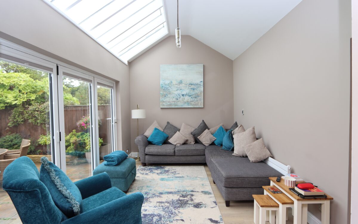 GARDEN ROOM: 14’ 3” x 9’ 7” (4.34m x 2.92m), with vaulted ceiling incorporating roof lights, radiator, meter cupboard and bi-folding doors with garden aspect leading to rear garden.