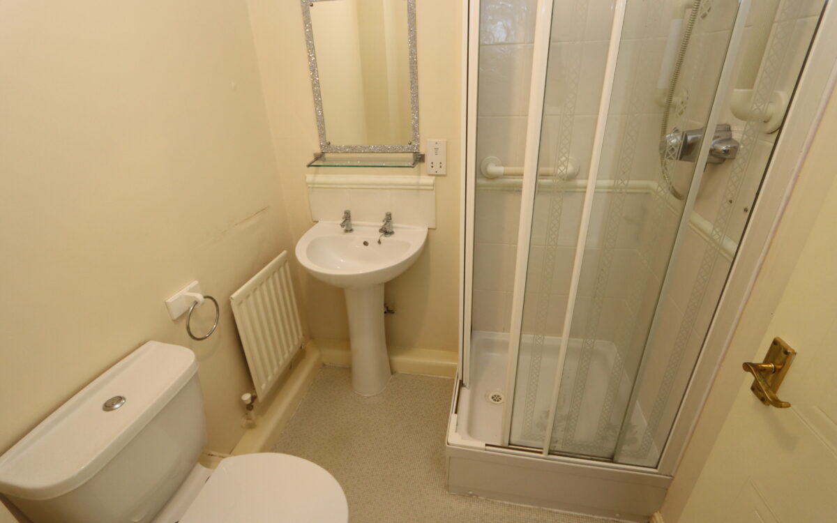 PLUS – en-suite shower room with low level WC, pedestal washbasin, tiled shower cubicle, extractor fan & radiator.
