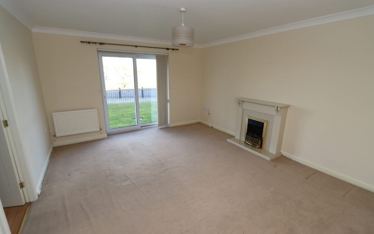 LOUNGE 14’10” x 12’10” (4.52m x 3.91m) security entry phone, fireplace, 2 radiators & uPVC double glazed patio doors with vertical louvre blinds and an open aspect over Woodburn Drive looking towards the playground of Whitley Lodge First School.