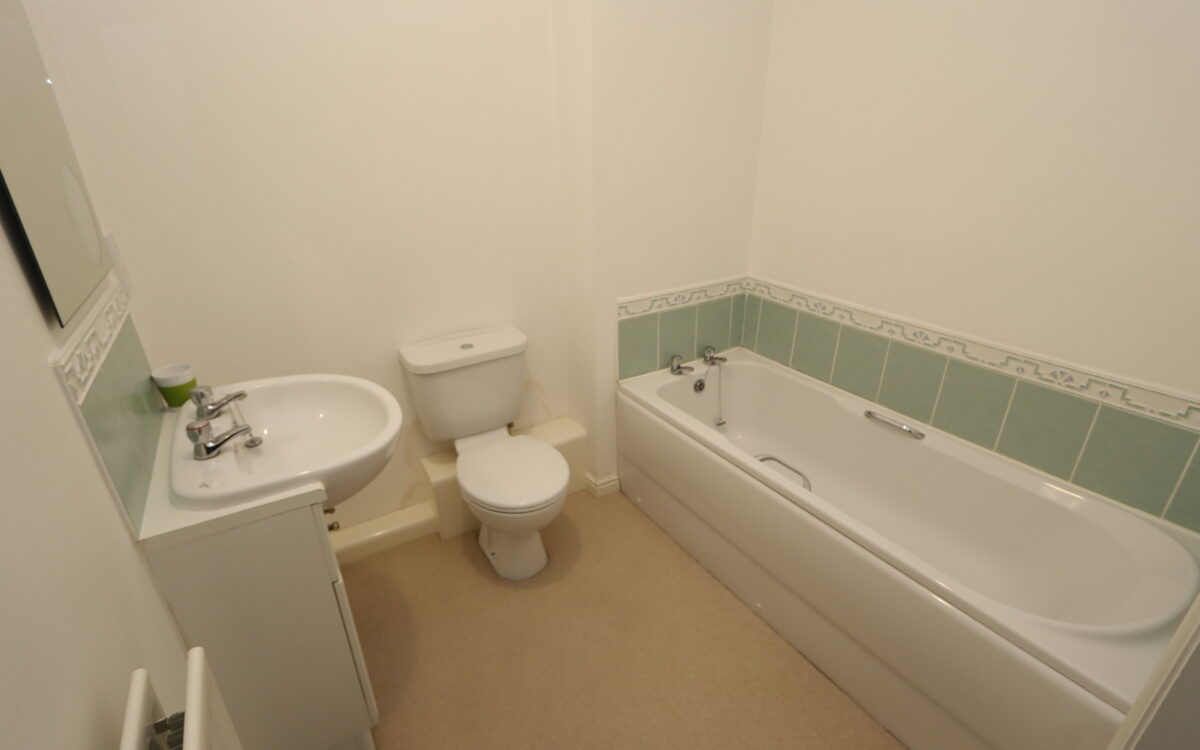 BATHROOM: panelled bath, vanity unit, low level WC, double radiator & extractor fan.