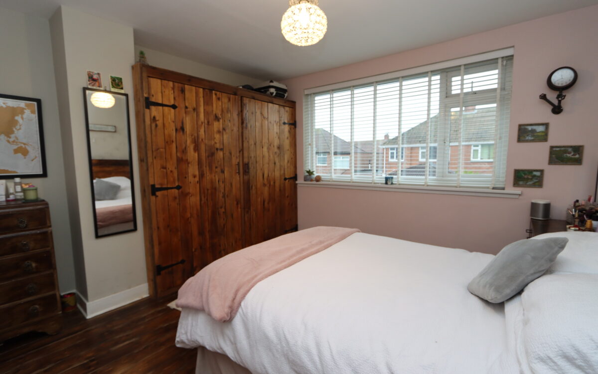 No. 2: at the rear 12’5″ x 12’0″ (3.78m x 3.66m) including large double fitted wardrobe, radiator and uPVC double glazed window with venetian blinds.