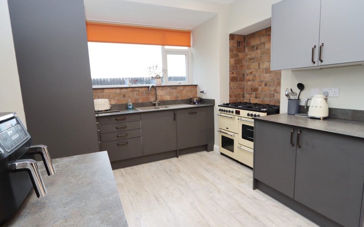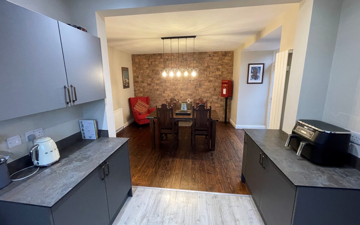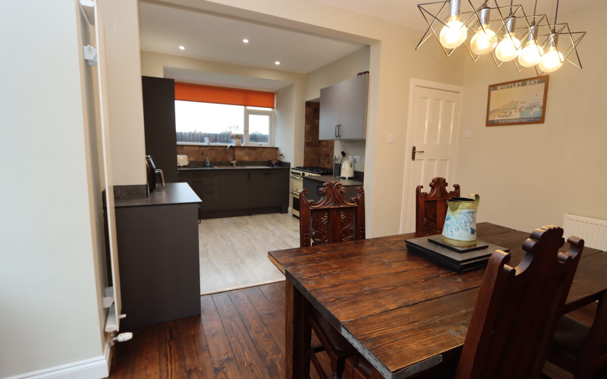 REFITTED DINING KITCHEN: 22’6″ x 9’1″ (6.86m x 2.77m) widening to 15’6″ (4.72m)