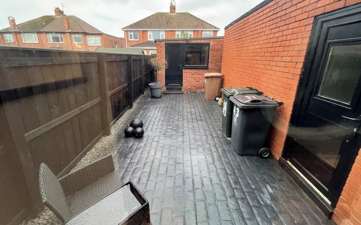 GARDENS: to the front there is a patterned concrete path with lawn and borders. To the side there is a lawned garden which is not overlooked and is well fenced measuring approx. 16’7″ (5.05m) wide. The rear garden is patterned concrete for easy maintenance.