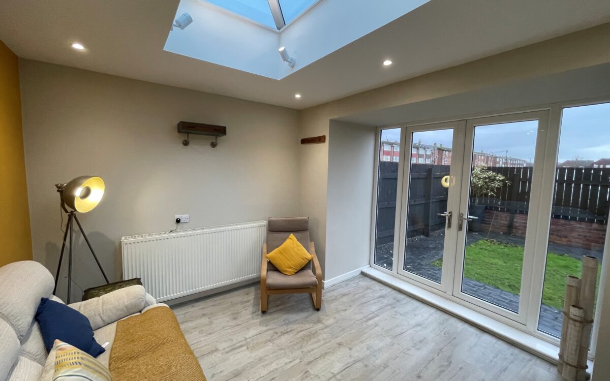 GARDEN ROOM: 12’6″ x 12’0″ (3.81m x 3.66m) with sunny facing aspect, uPVC double glazed lantern, radiator, 6 concealed downlighters, uPVC double glazed double doors to side garden.