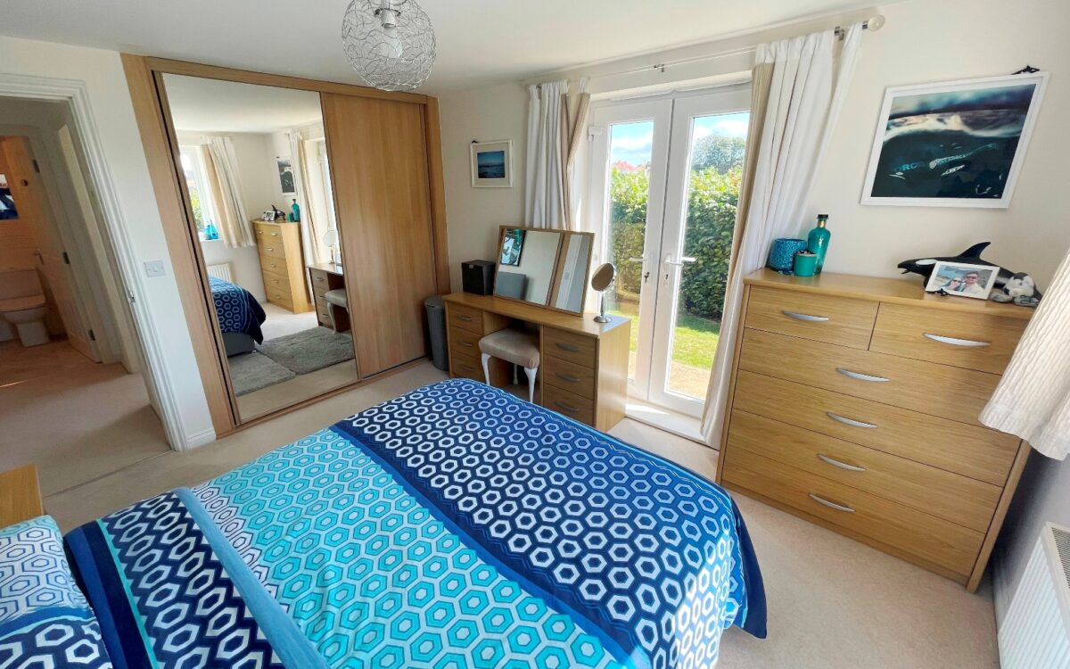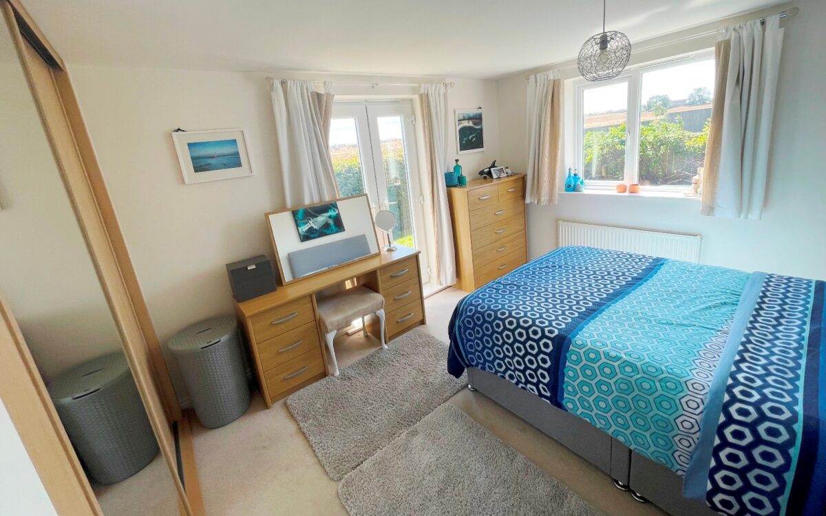 No. 1 10′ 8″ x 12′ 0″ (3.25m x 3.66m) plus fitted wardrobes on 1 wall, radiator, uPVC double glazed window & uPVC double glazed double-opening doors to patio area with open views.