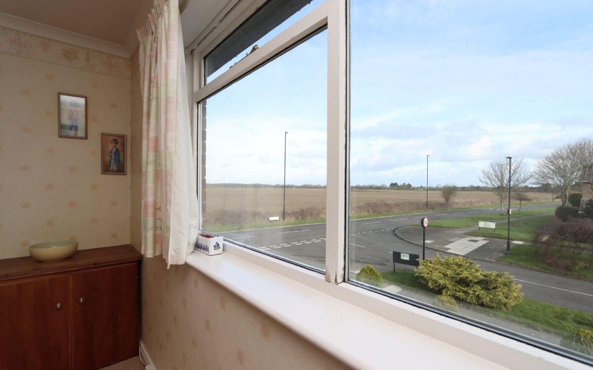 No. 4: at front, 11’ 7” x 9’ 8” (3.53m x 2.95m), double glazed window offering an open aspect overlooking Beaumont Drive with farmland views beyond.