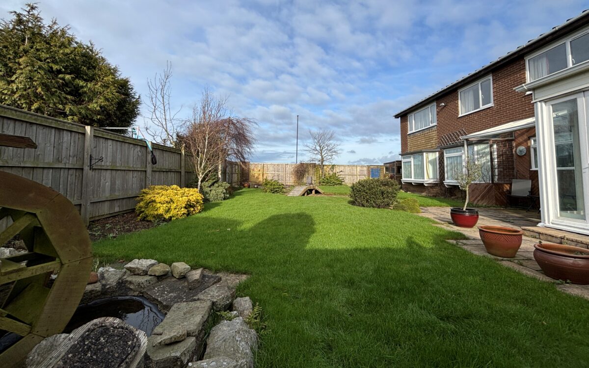 GARDENS: that at the front has a double block paved driveway providing off road standage for 2 vehicles, shaped lawn, rockery and well-maintained, planted & well established borders. The rear garden measures approx. 38’ 3” long x 71’ 0” wide (11.66m x 21.64m), has a sunny westerly aspect, fenced perimeter, 2 shaped lawns, planted borders, external power supply, paved patio, 2 wood sheds, water feature with rockery and 14’ 8” (4.47m) gated side entrance.