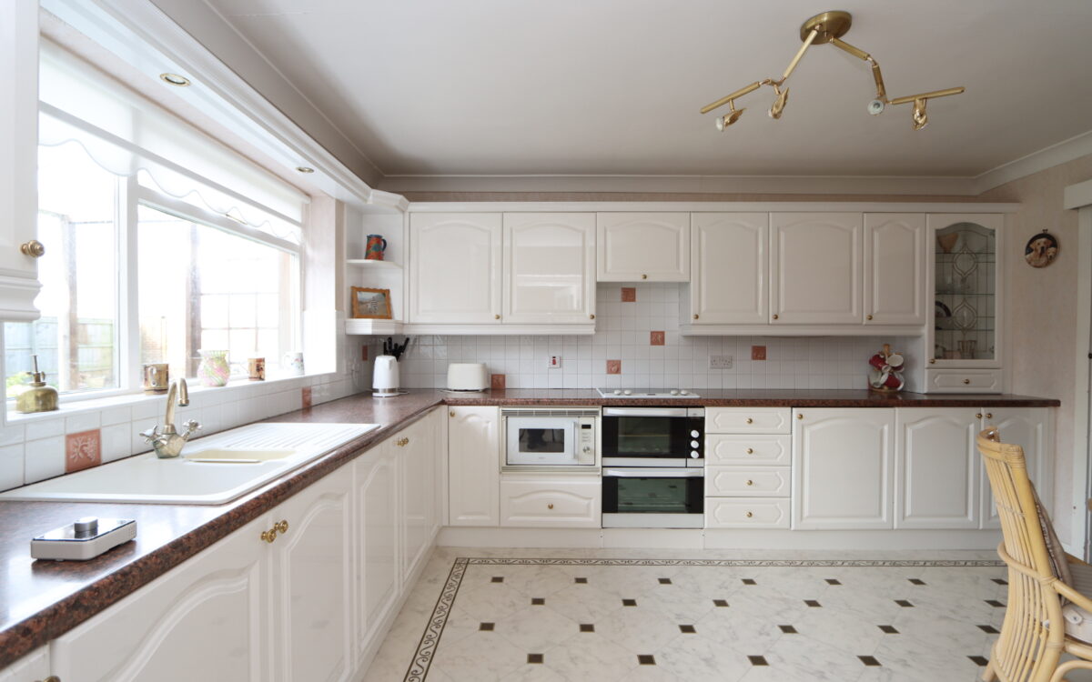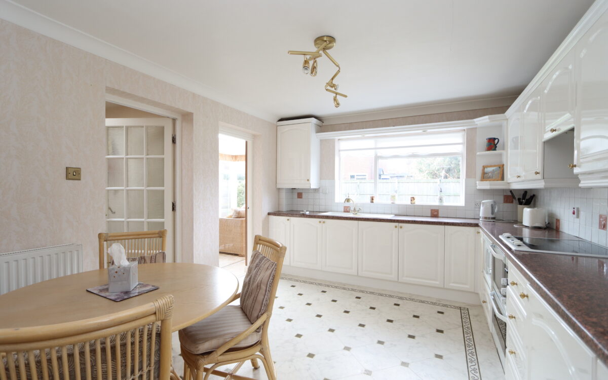 BREAKFASTING KITCHEN: 13’ 8” x 10’ 10” (4.17m x 3.30m), ‘Amtico’ flooring, part tiled walls, a good range of fitted wall & floor units, integrated ‘Kenwood’ microwave, ‘Stoves’ electric hob with illuminated extractor hood above, ‘AEG’ under bench double oven, 1 ½ bowl sink with drainer & mixer tap, integrated fridge, double glazed window with roller blind, cupboard housing ‘Vaillant’ gas fired condensing boiler and doors to orangery & utility room.