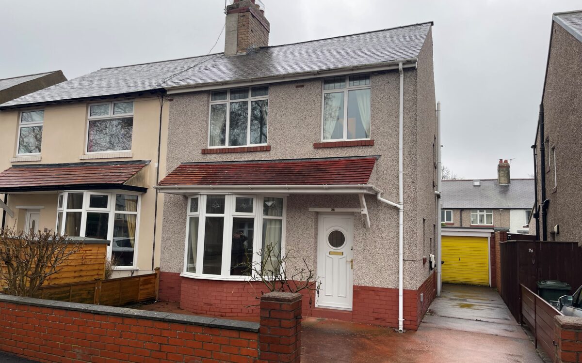 WELL SITUATED 3 BEDROOMED SEMI-DETACHED HOUSE WHICH WAS BUILT CIRCA 1910 BY GOFTON. This property has the advantage of being re-rendered around 2009, has a paved driveway providing off road vehicle standage as well as PVC fascias, guttering & downcomers, part uPVC part aluminium double glazing, gas central heating (combi boiler), 2 ground floor reception rooms the lounge with bay window & fireplace, tiled bathroom, 3 bedrooms – 2 of which have fitted wardrobes, detached garage, electric car charging point and rear garden.