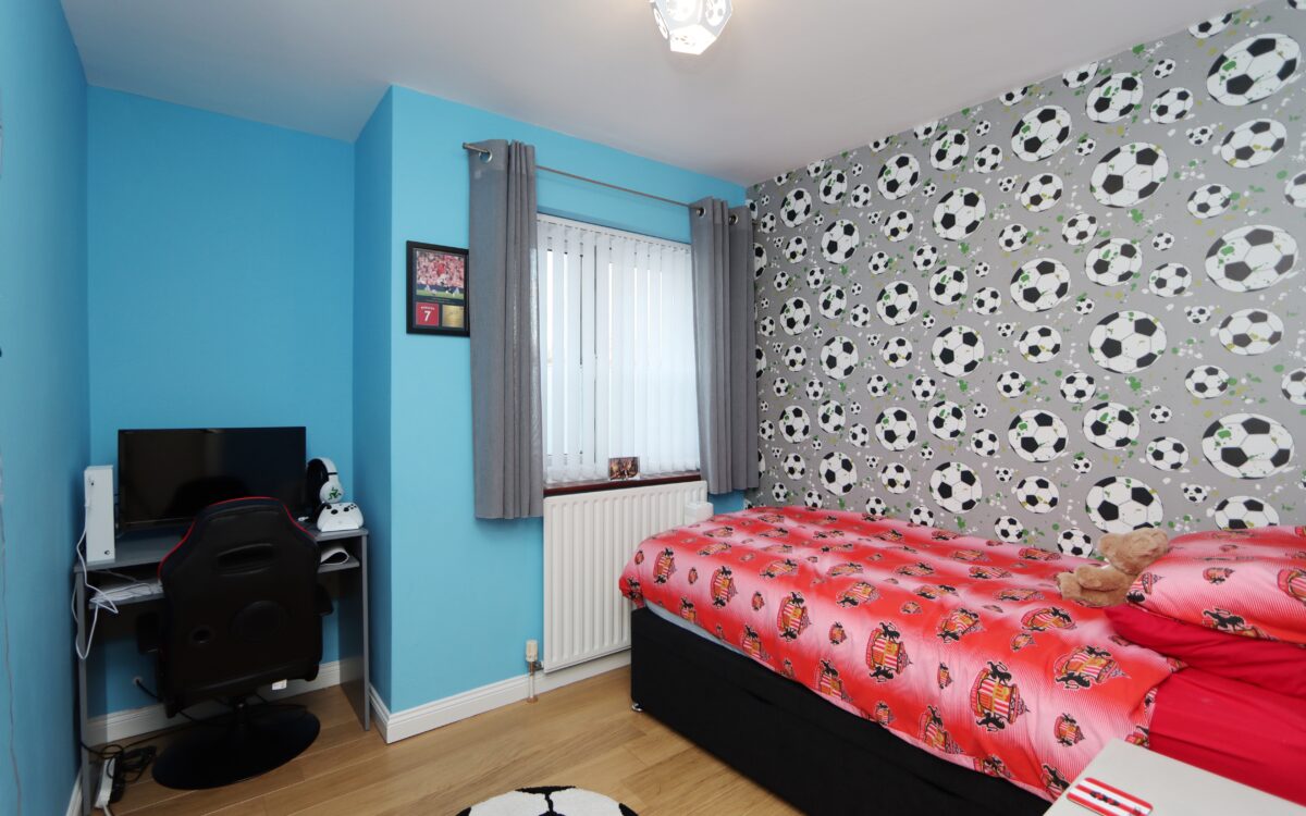 No. 2 8′ 5″ x 11′ 7″ (2.57m x 3.53m) plus double fitted wardrobe, radiator & uPVC double glazed window with vertical louvred blind.
