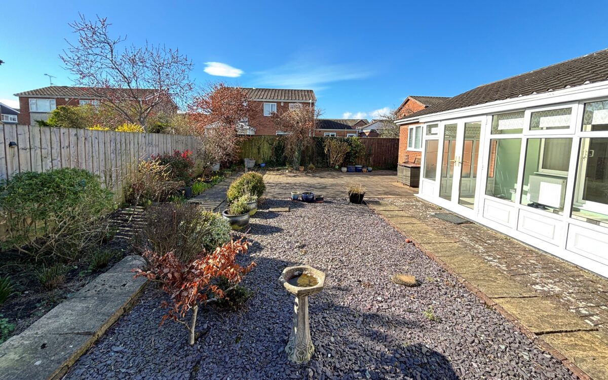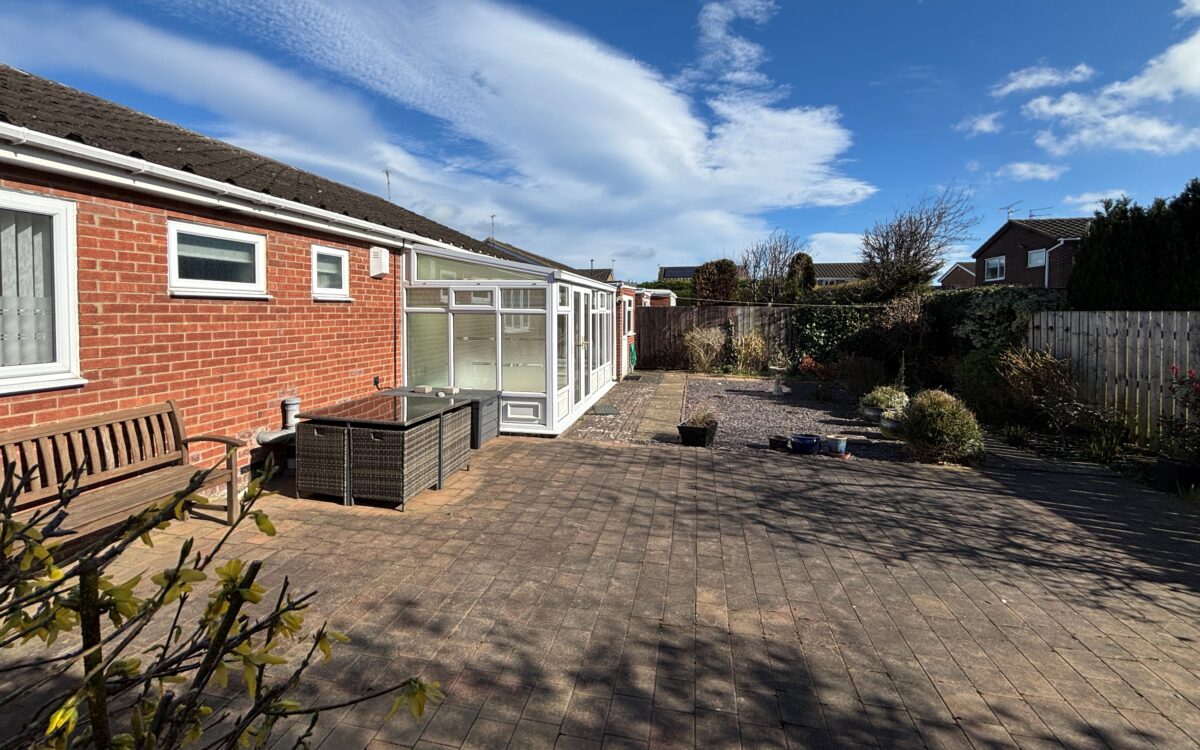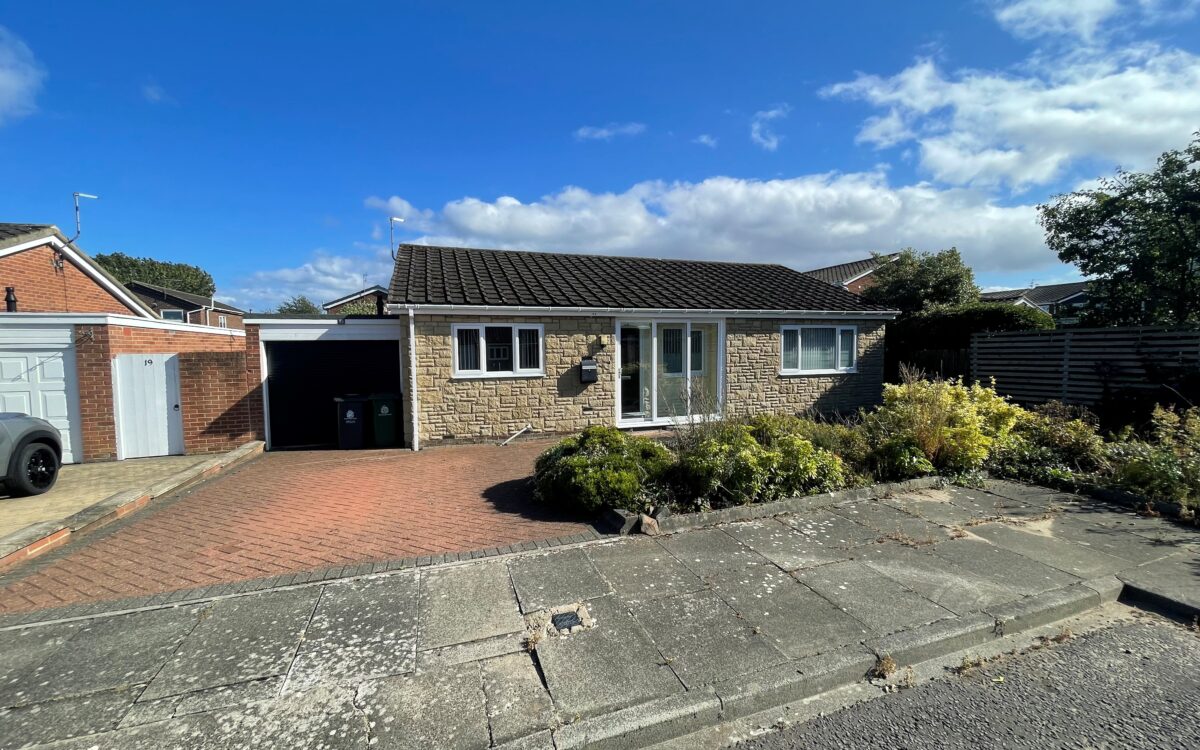 BEAUTIFULLY PRESENTED, UPDATED & MODERNISED 3 BEDROOMED STONE-FACED DETACHED BUNGALOW which was built by Bellway in the mid 1970s and has the advantage of a uPVC double glazing, gas central heating (combi. boiler), dining kitchen, large living room with media wall and uPVC double glazed conservatory off, refitted shower room, garage with electric door, utility room, burglar alarm, block-paved driveway providing off-road vehicle standage and sunny south-facing rear garden.