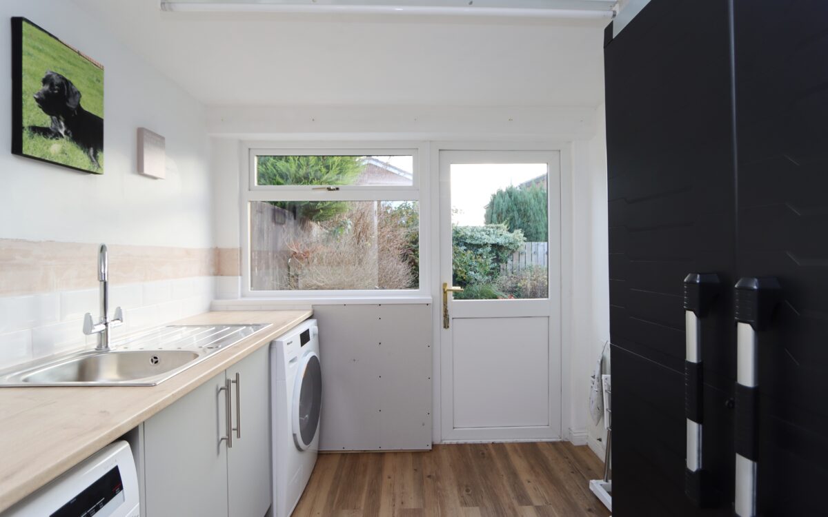 UTILITY ROOM 7′ 8″ x 7′ 1″ (2.34m x 2.16m) stainless steel sink & drainer, plumbing for washing machine, radiator & uPVC double glazed door to rear garden.