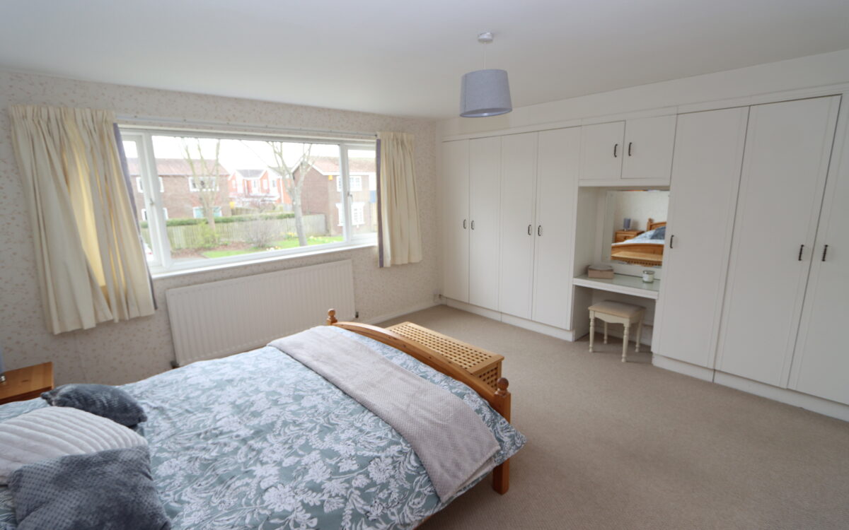 No. 1: at front, 15’ 6” x 13’ 6” (4.72m x 4.11m) including fitted wardrobes & dressing table, radiator and uPVC double glazed window.
