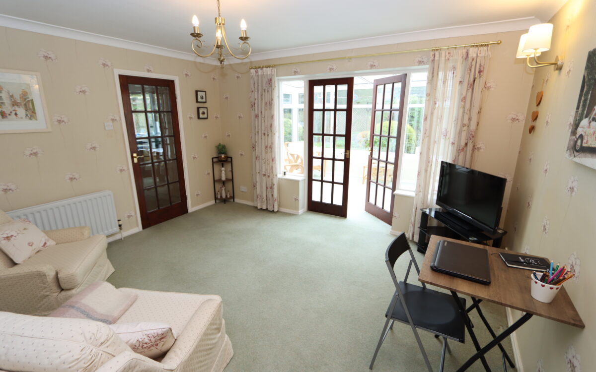 FAMILY ROOM / DINING ROOM: 13’ 4” x 11’ 10” (4.06m x 3.61m), double banked radiator, glazed door to kitchen and glazed double opening doors and side windows to conservatory.