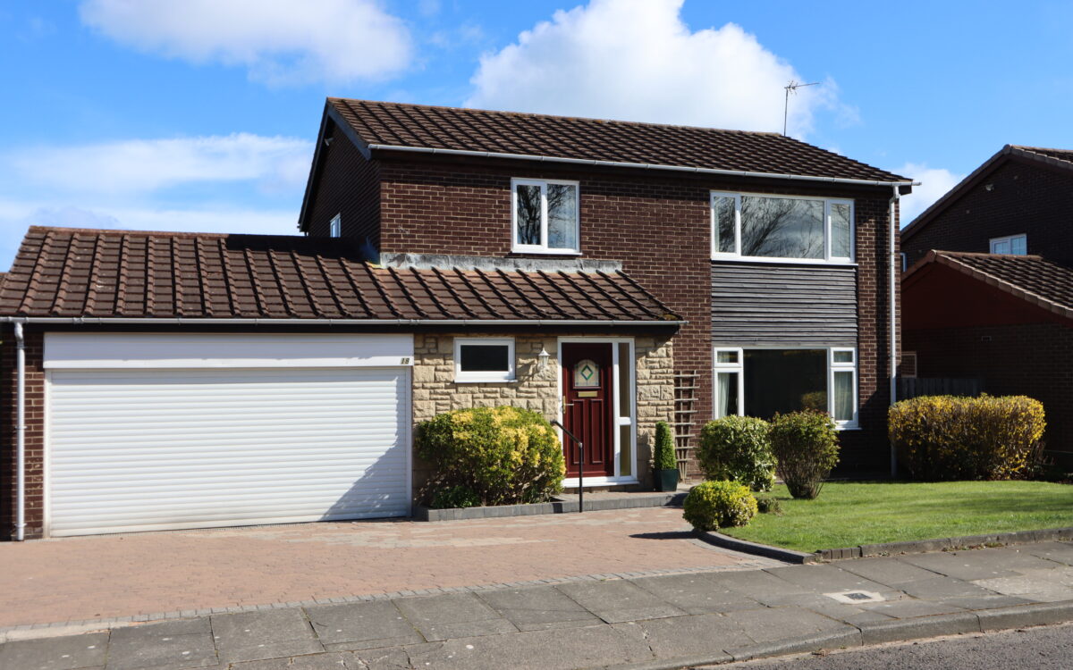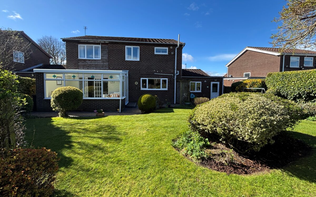 GENEROUSLY PROPORTIONED AND WELL PRESENTED FOUR BEDROOMED LARGER-STYLE DETACHED FAMILY HOME with no onward chain, which was built in the mid 1970s by Bellway. This property has the advantage of beautifully maintained gardens to the front and rear as well as uPVC double glazing, gas central heating, spacious hallway, downstairs WC, 2 good sized ground floor reception rooms, dining kitchen, large utility room, uPVC double glazed conservatory, double garage with electric door, and double driveway for off road vehicle standage.