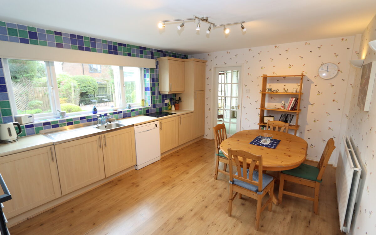 DINING KITCHEN: 15’ 8” x 11’ 8” (4.78m x 3.56m), with a range of fitted wall & floor units, stainless steel sink & drainer, part tiled walls, ‘Lamona’ electric hob, ‘Bosch’ dishwasher, ‘Lamona’ microwave, ‘Lamona’ eye level oven, 2 fitted wall lights, uPVC double glazed window, double banked radiator, door to utility room and glazed doors to hall and dining room.