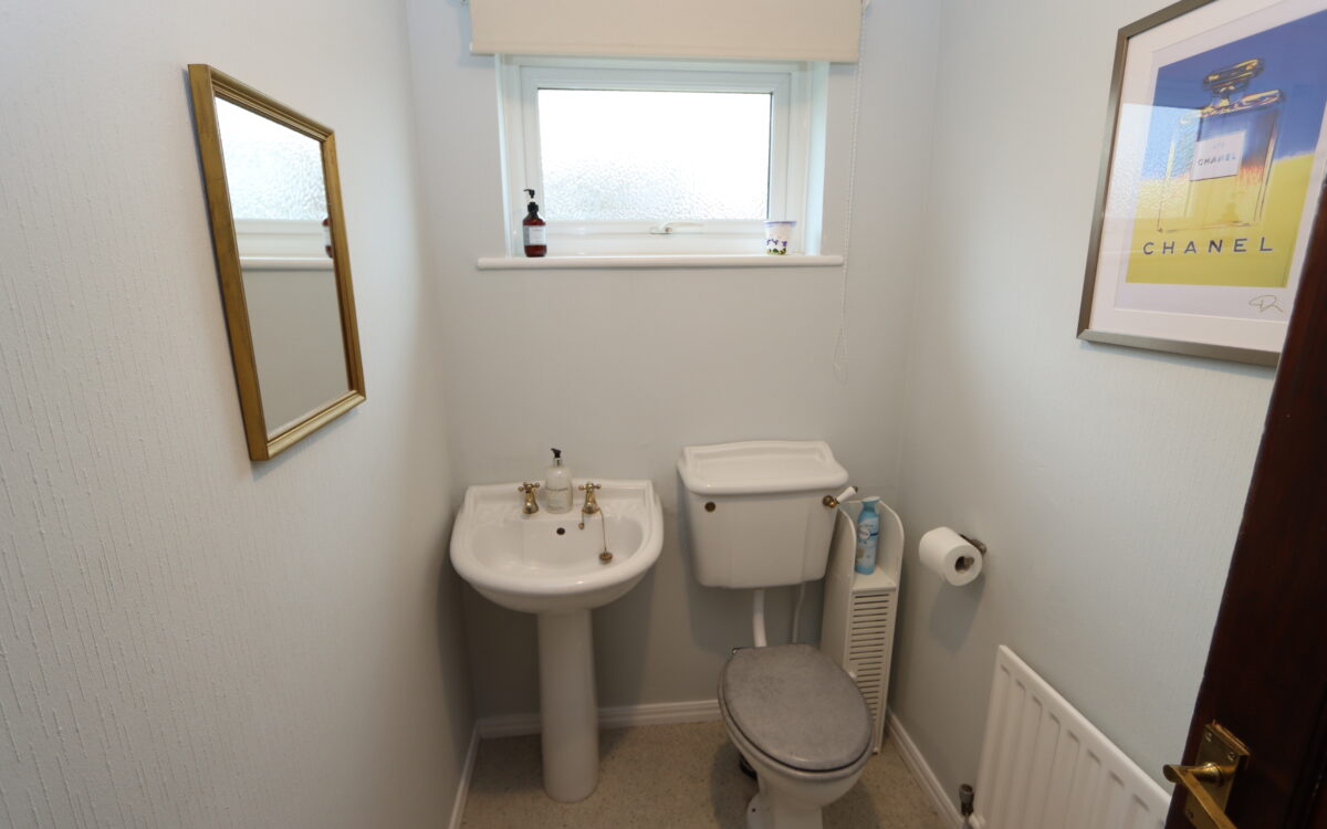 DOWNSTAIRS WC: radiator, low level WC, pedestal washbasin and uPVC double glazed window.