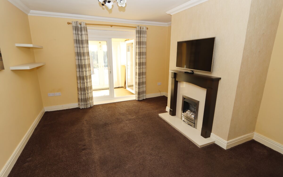 LOUNGE: 16’6″ x 12’5″ (5.03m x 3.78m max overall measurement) radiator, fireplace & uPVC double glazed doors to conservatory.