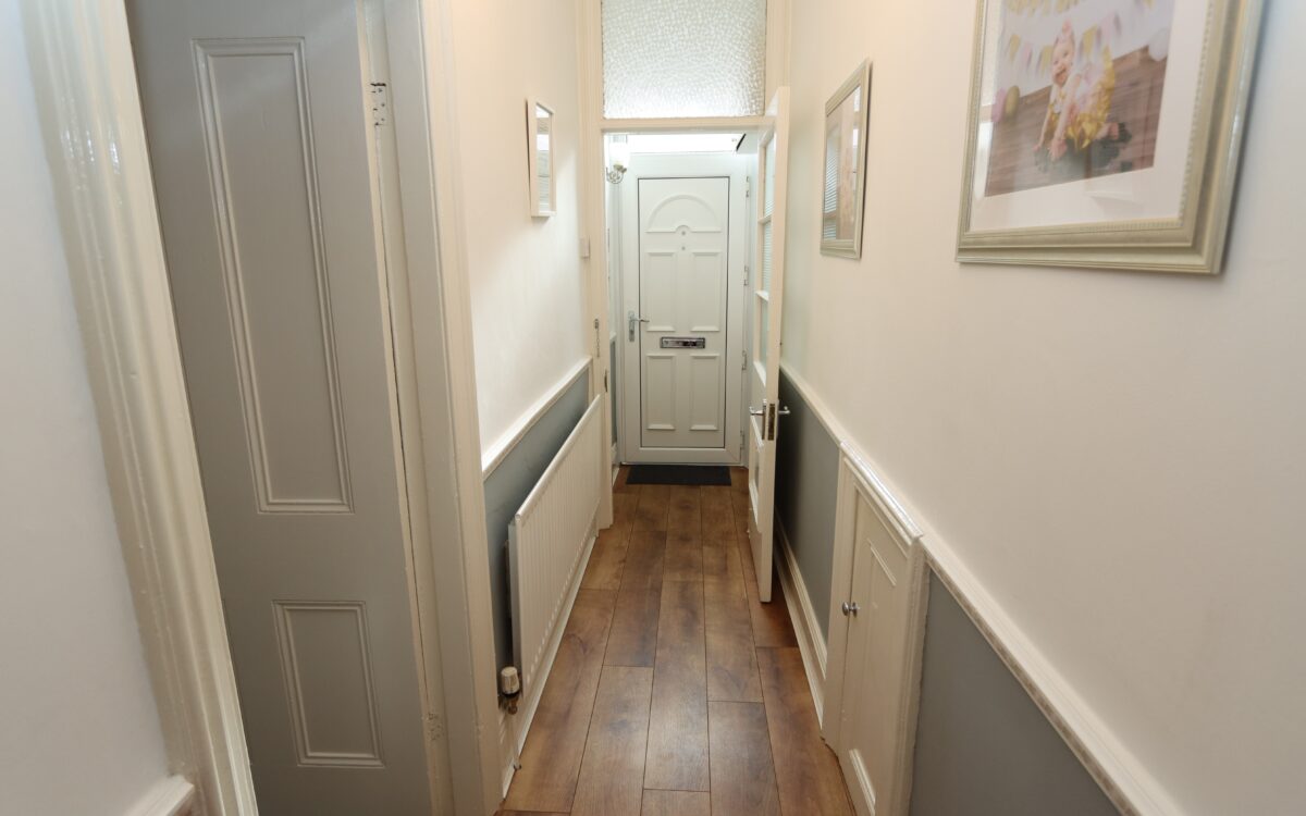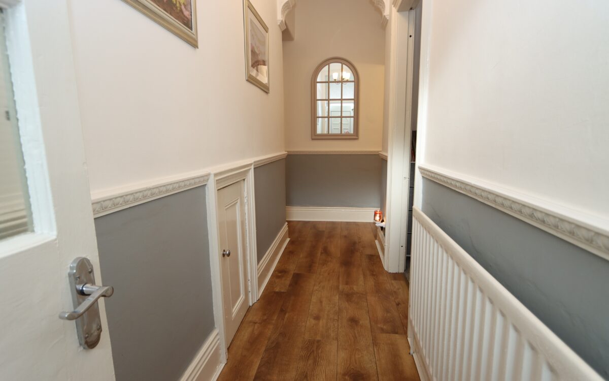 HALL: with understairs store cupboard, meter cupboard, radiator and dado rail.