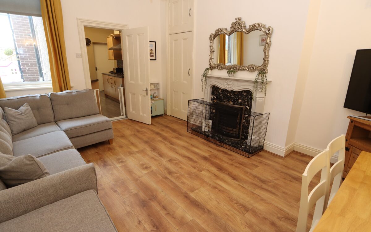 SUPERBLY PRESENTED AND WELL SITUATED 2 BEDROOMED GROUND FLOOR FLAT BUILT AROUND 1910. The property benefits from an attractive bay window to the front elevation with many original features throughout, uPVC double glazing, gas central heating (combi-boiler installed 2022), entrance hall, fitted kitchen, living room, refitted bathroom, 2 bedrooms and large rear yard measuring approx. 43′ (13m) long with double doors.