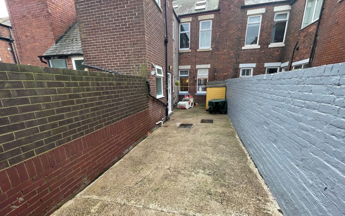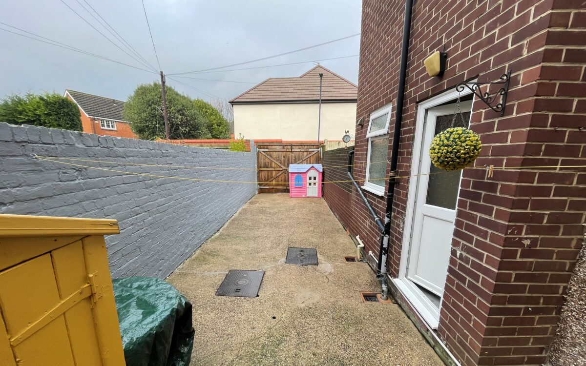 REAR YARD: 43’7″ x 9’9″ (13.28m x 2.97m) with tap, wood shed, double doors for car standage.